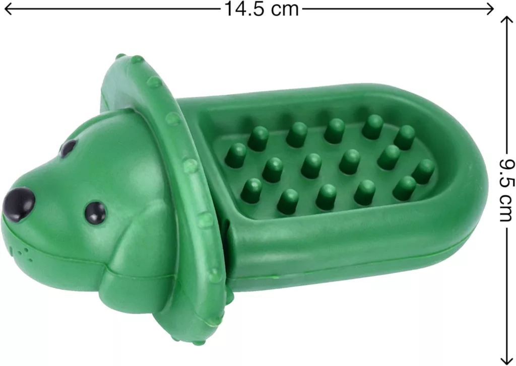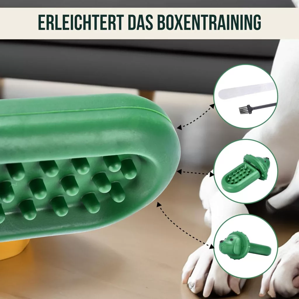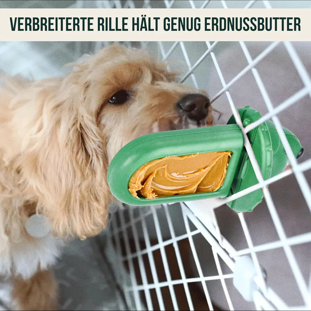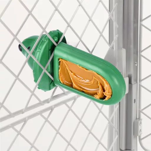 Gumeni materijal otporan na uništenje jamči da će biti prikladan čak i za aktivne i snažne žvakače. Funkcija doziranja poslastica omogućuje vlasnicima pasa da interaktivno komuniciraju sa svojim ljubimcem, dok je mogućnost pričvršćivanja na kavez idealna za trening u kavezu i smanjenje anksioznosti.