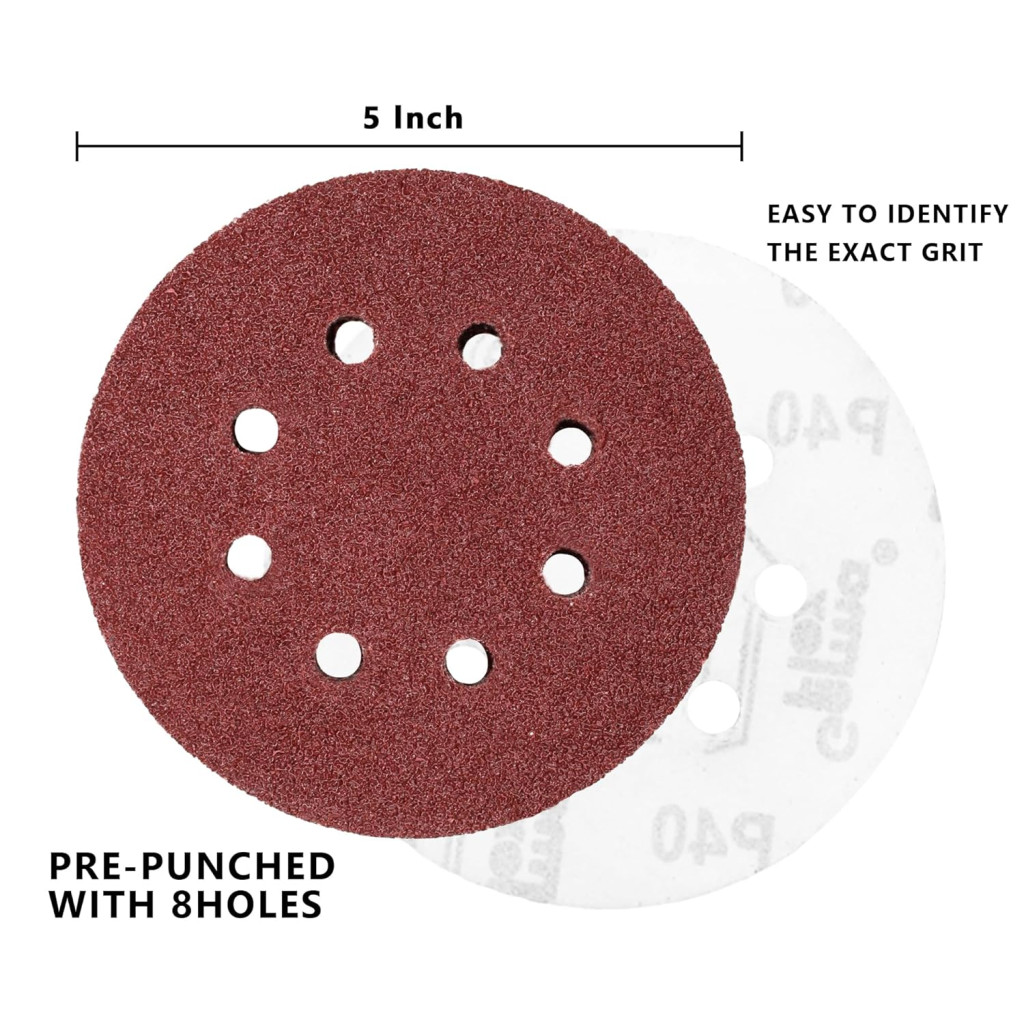 A 125 mm-es átmérőjű csiszolópapír korongok kompatibilisek a legtöbb 5 hüvelykes (125 mm) véletlenszerű orbitális csiszolóval. Az 8 lyukas kialakítás biztosítja a megfelelő porgyűjtést és szellőzést a csiszolók porgyűjtő rendszerével.