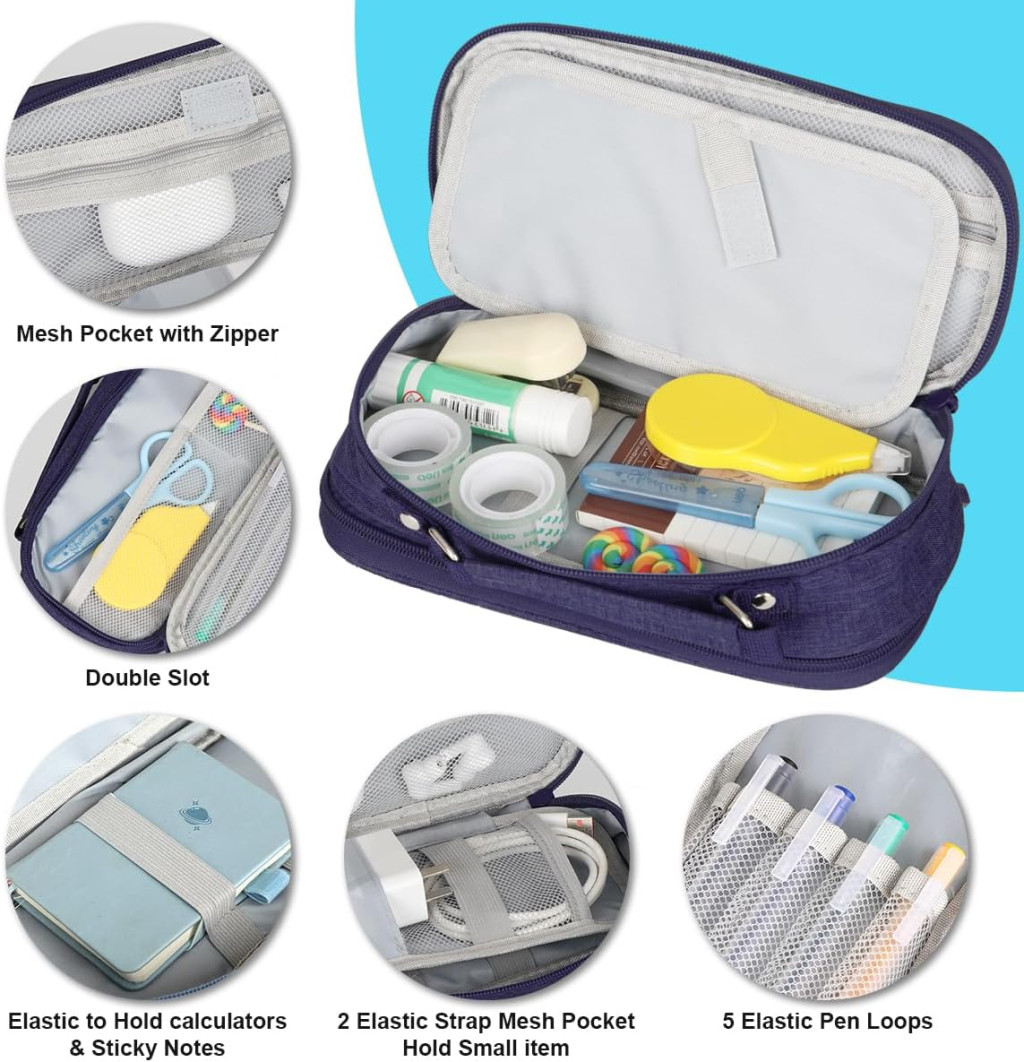 ???? Školska uporaba: Savršen izbor za učenike koji žele organizirano držati sav školski pribor na jednom mjestu. Elegantna tamnoplava boja pristaje svakoj školskoj torbi.