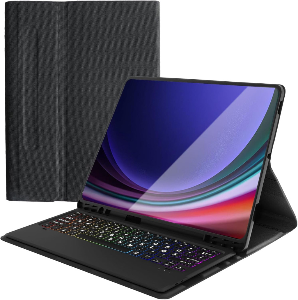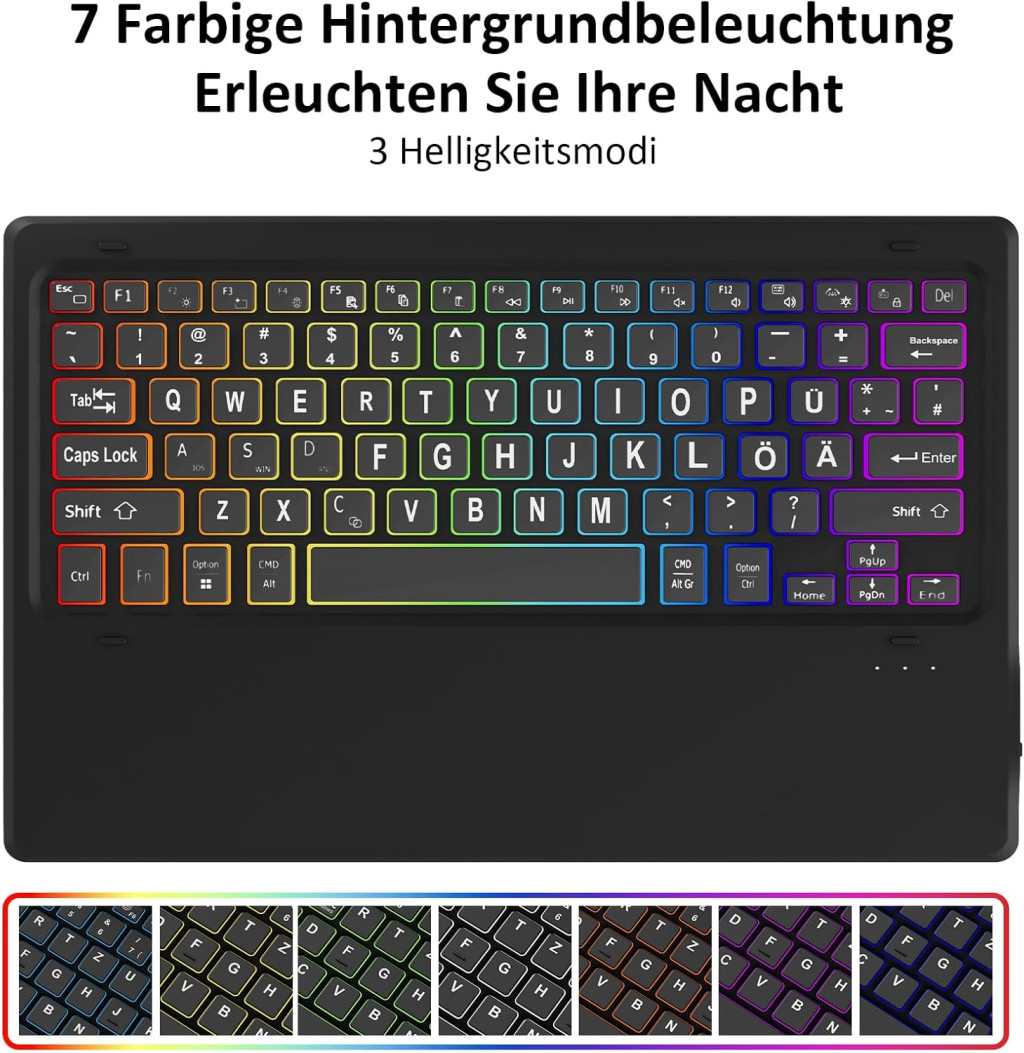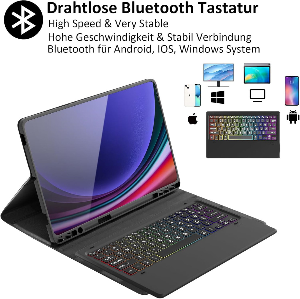 Qoosea QWERTZ Tipkovnica s pozadinskim osvjetljenjem i futrola za Samsung Tab S9 FE+/S9+ 12.4" Tablet - Odvojiva Bluetooth tipkovnica, TPU zaštitna futrola, 3 Á