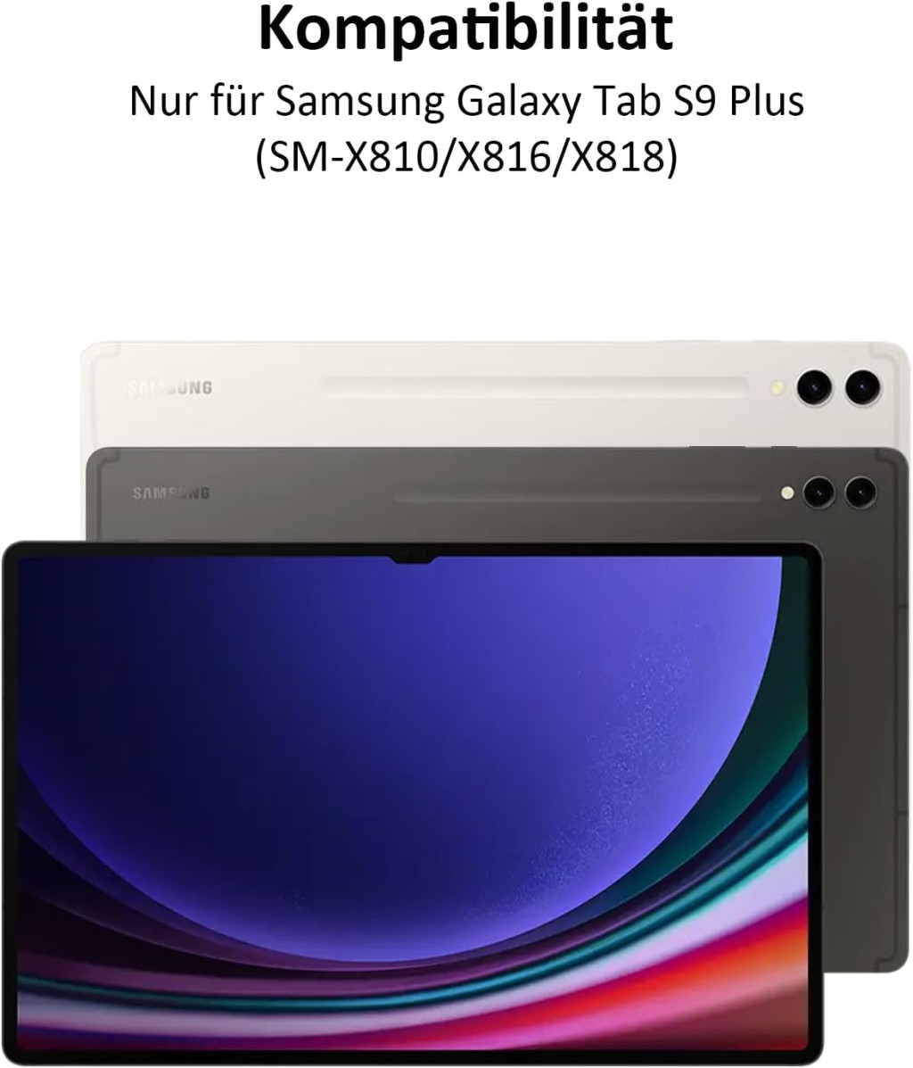 Qoosea QWERTZ maska s tipkovnicom posebno je dizajnirana za Samsung Galaxy Tab S9 Plus/+ 12.4 inča 2023 modele (SM-X810/X816B/X818U) i Samsung Tab S9 FE+ 12.4 inča tablete. Važno je napomenuti da nije kompatibilna s drugim modelima Samsung Galaxy tableta, stoga provjerite broj modela svog uređaja prije kupnje.