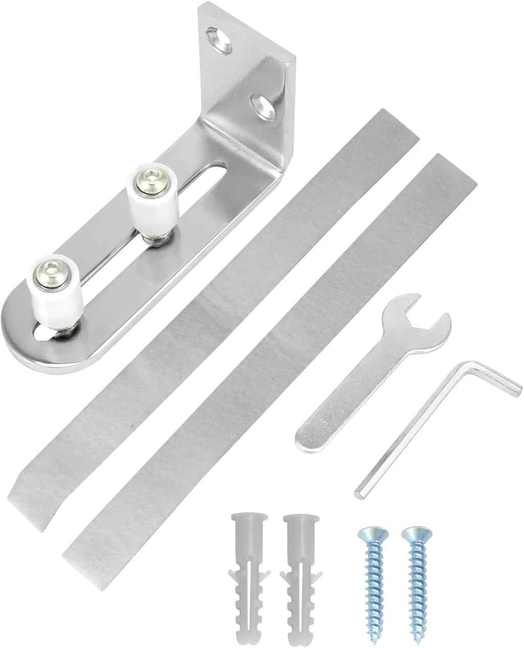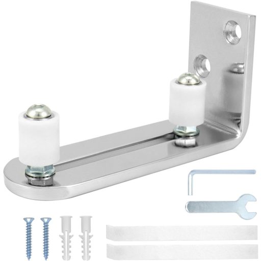 QWORK Rozsdamentes Acél Padlóvezető Csúszóajtóhoz 68mm-ig, Állítható Vezetőrendszer