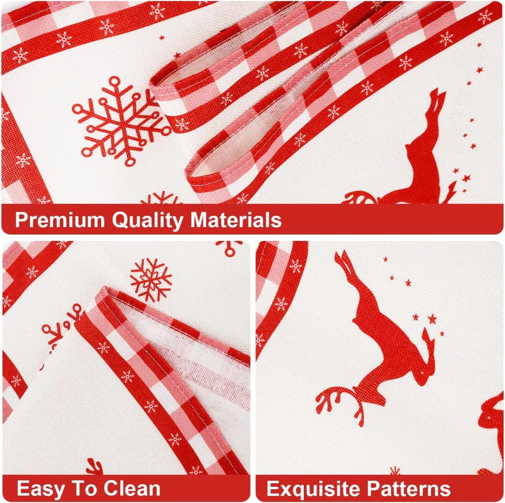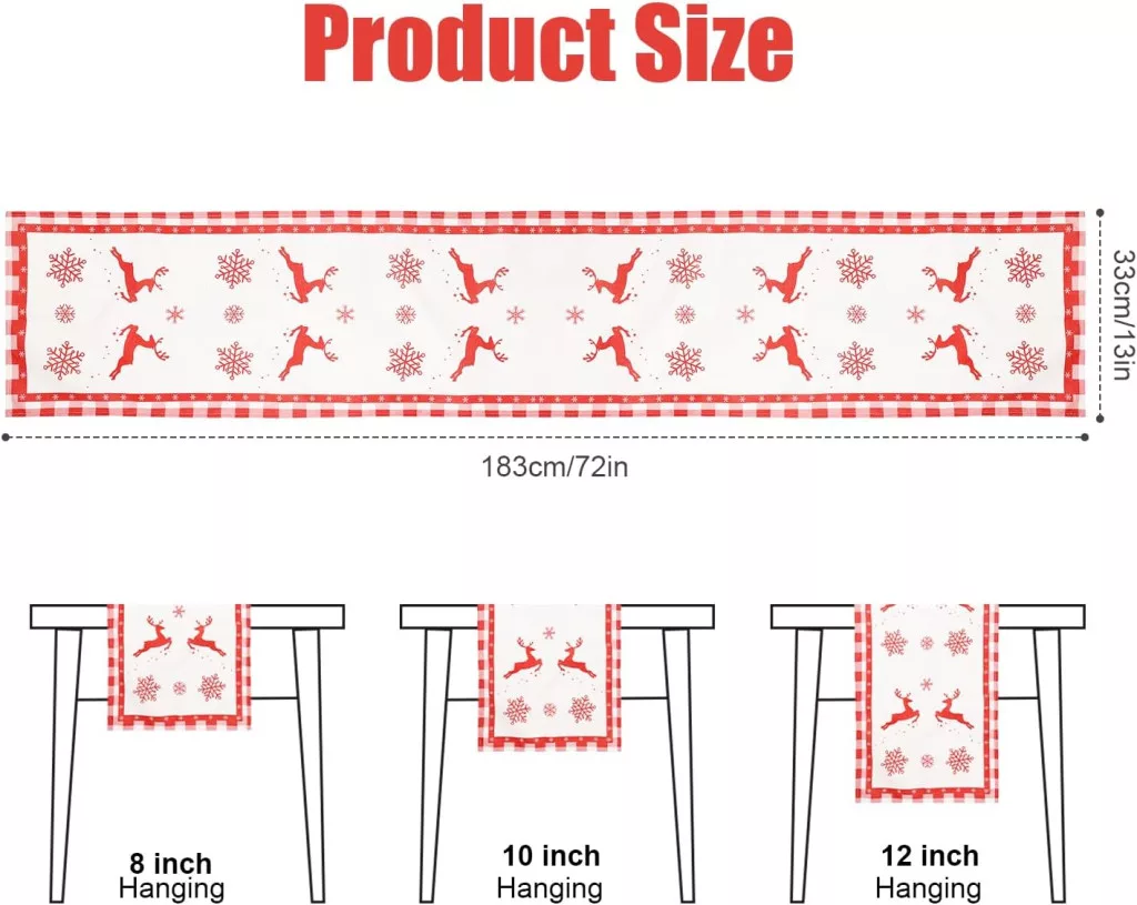 A 33 cm széles és 183 cm hosszú méret szinte minden standard étkezőasztalhoz jól illeszkedik. Az asztali futó tökéletesen kombinálható más karácsonyi dekorációkkal – szalvétákkal, gyertyákkal és asztali díszítésekkel. A lenvászon anyag természetes megjelenésével harmonizál a modern és klasszikus belsőépítészeti stílusokkal egyaránt. Kiváló választás, ha szeretnéd az asztal dekorációját az ünnepi hangulathoz igazítani.