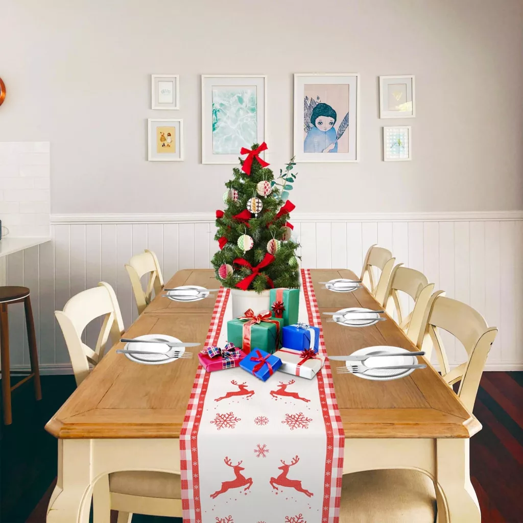 Karácsonyi asztali futó az étkezőasztalon