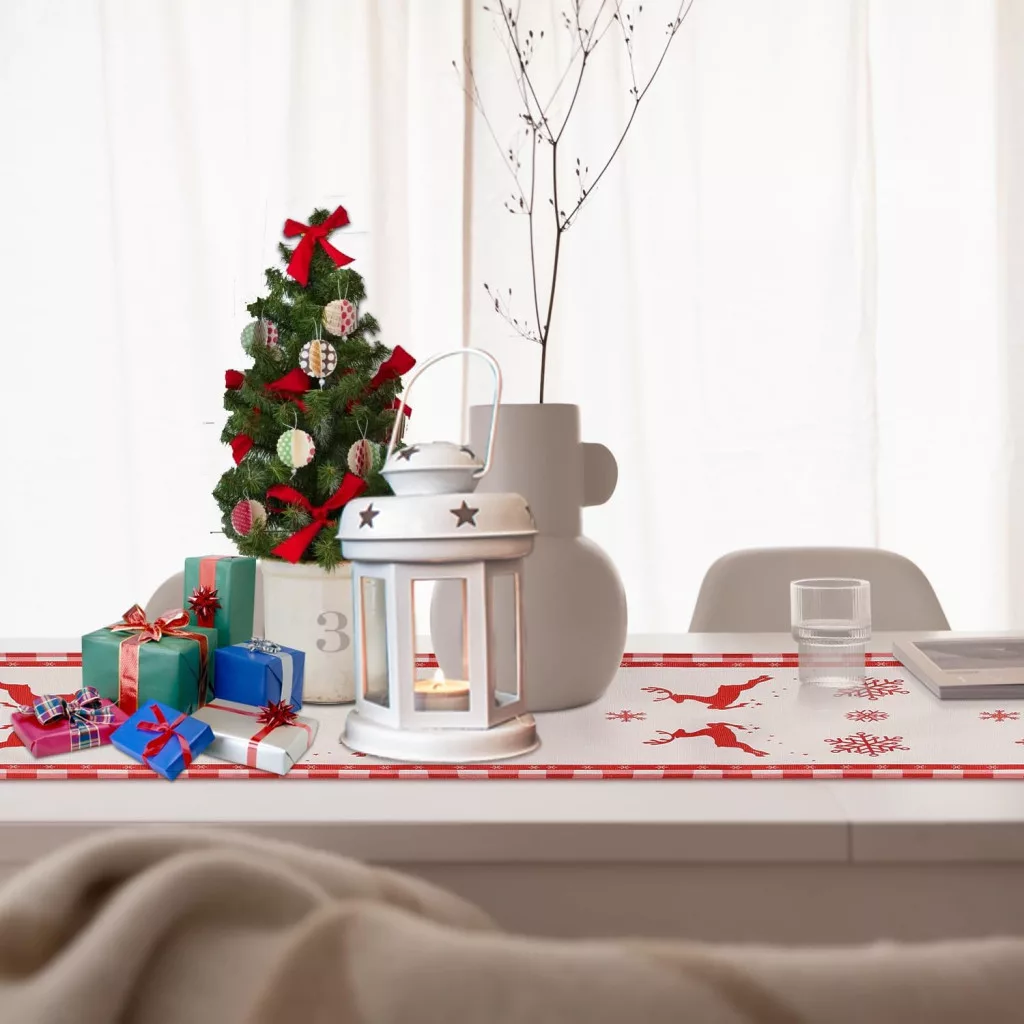 A PEUTIER karácsonyi asztali futó 33 x 183 cm-es méretben tökéletes választás az ünnepi asztalhoz: