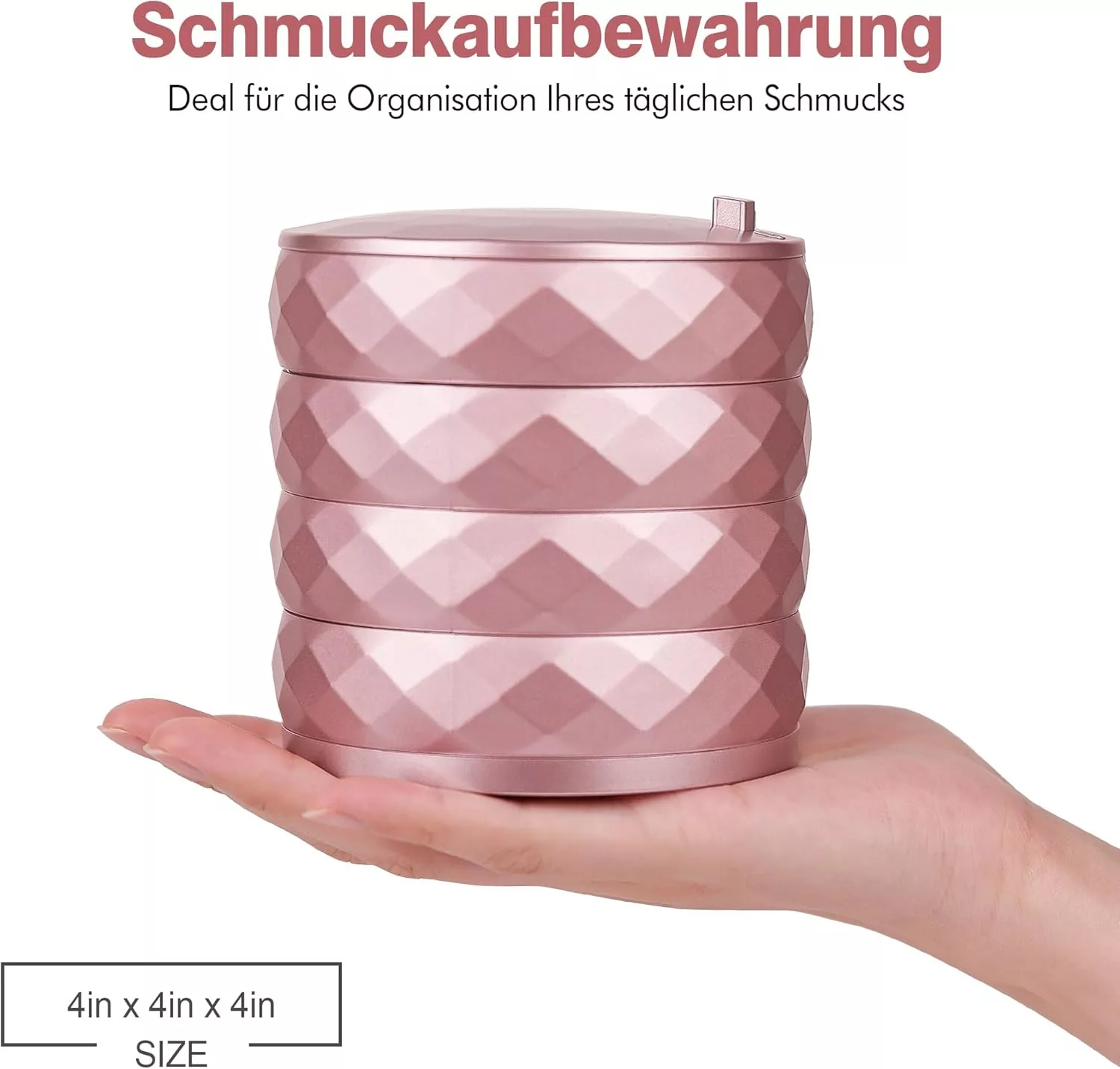 Zahvaljujući idealnoj veličini (9,7 x 9,7 x 9,7 cm) savršen je izbor za dom, putovanje ili čak ured. Sustav za pohranu na 4 razine osigurava da je svaki komad nakita na svom mjestu i da ostane siguran.
