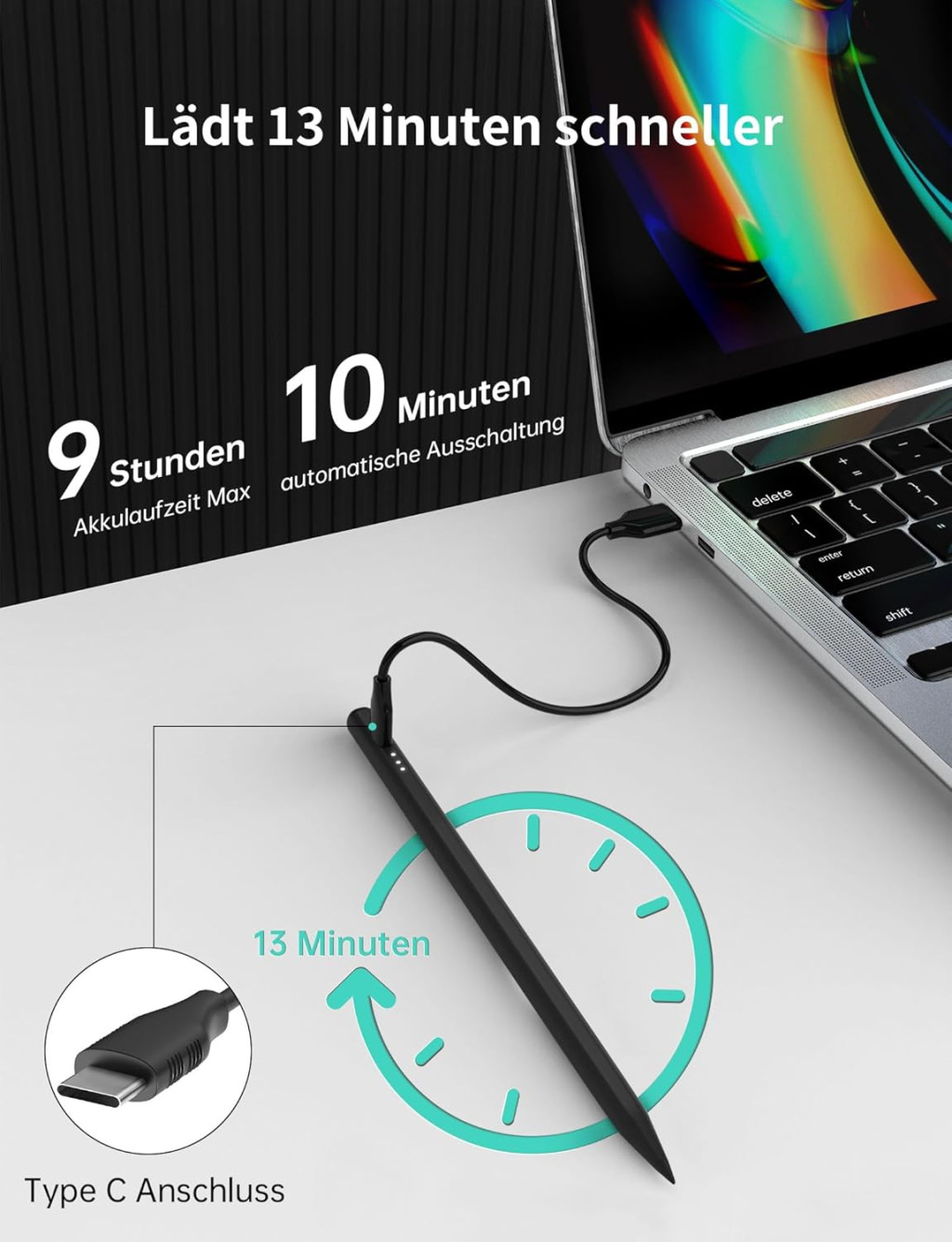 ✨ Munjevito brzo punjenje - Može se napuniti u samo 13 minuta, tako da nikada nećete morati dugo čekati da nastavite s radom. S punim punjenjem osigurava do 9 sati neprekidnog korištenja, što je savršeno za cijeli radni ili školski dan.