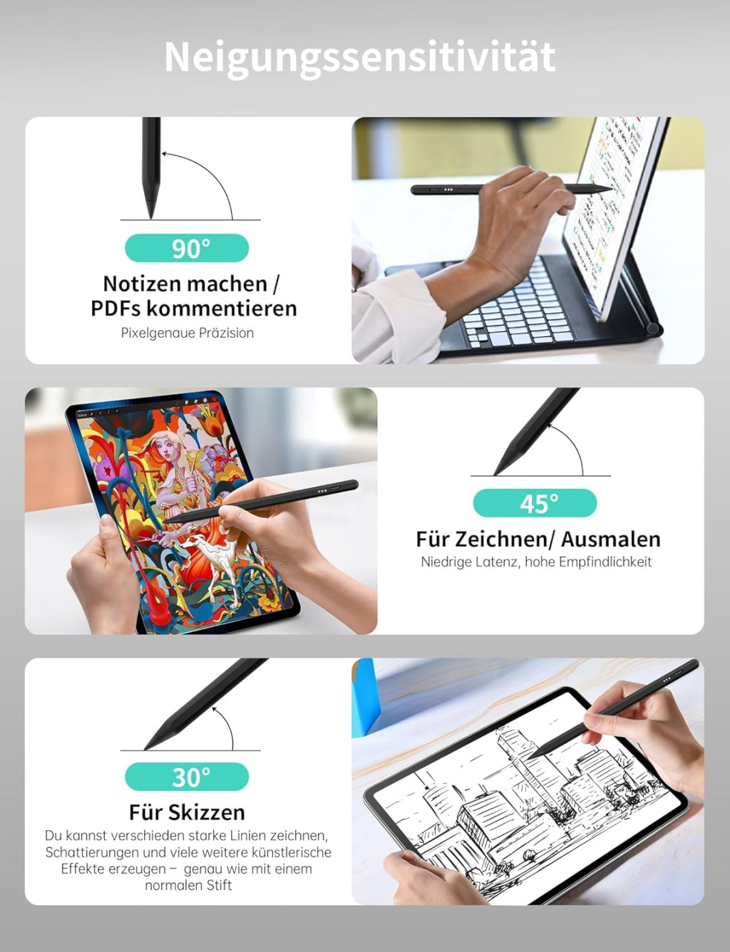 ✨ Osjetljivost na nagib - Baš kao i s običnom olovkom, promjenom kuta nagiba olovke možete stvoriti različite debljine linija i nijanse, što je posebno korisno u umjetničkim aplikacijama i pri izradi skica.