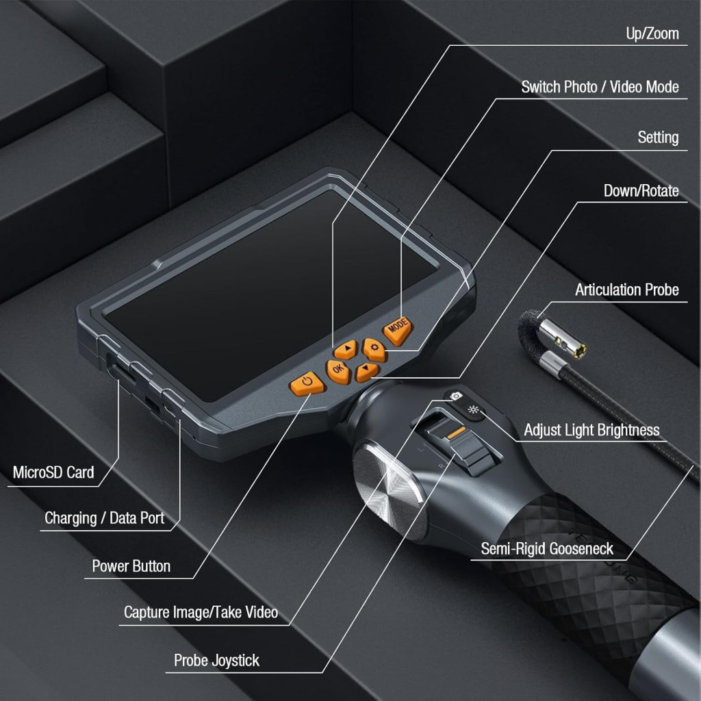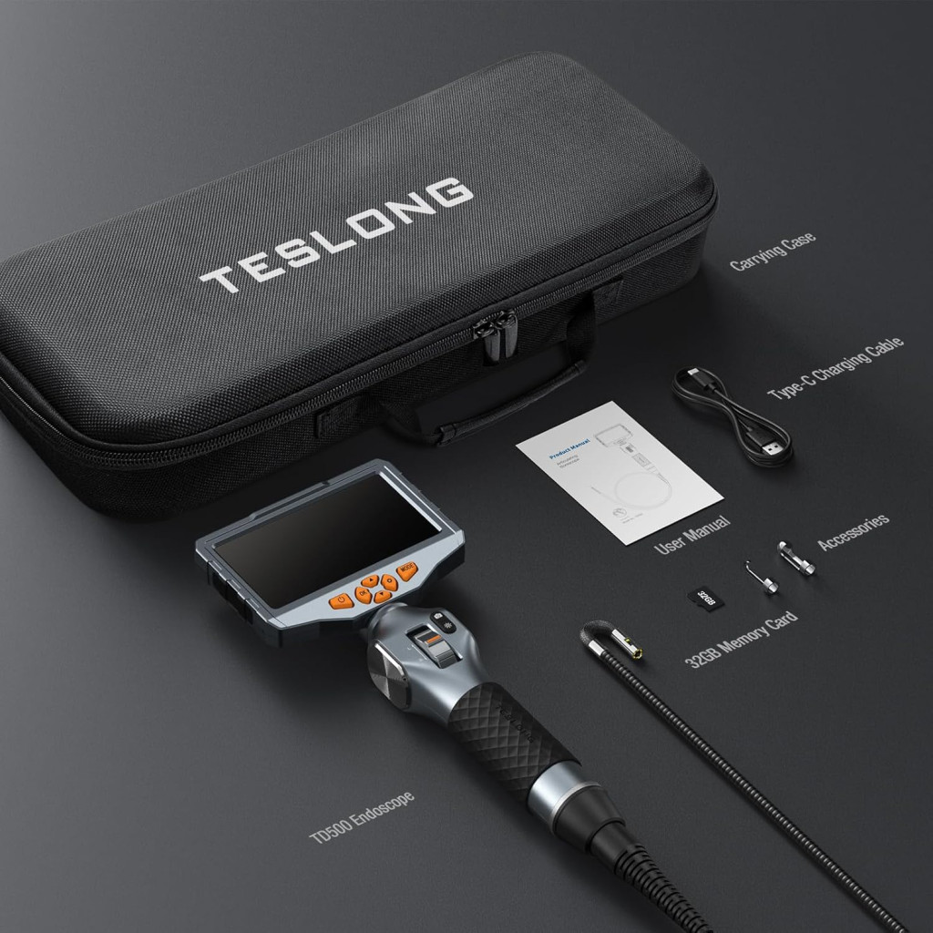 TESLONG Endoszkóp Kamera Dupla Lencse 6,5mm Forgó Fej 5 Colos LCD Kijelző LED Világítás 1,55m