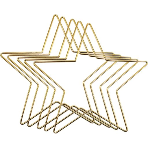Ovaj set od 5 metalnih prstenova idealan je izbor za sve koji vole izrađivati kreativne DIY projekte. Oblik petokrake zvijezde i elegantna zlatna boja savršena su osnova za izradu hvatača snova, božićnih ukrasa, vjenčanih vijenaca i drugih DIY rukotvorina. Proizvod je izrađen od visokokvalitetnog metalnog materijala koji jamči trajnost i dugi vijek trajanja.