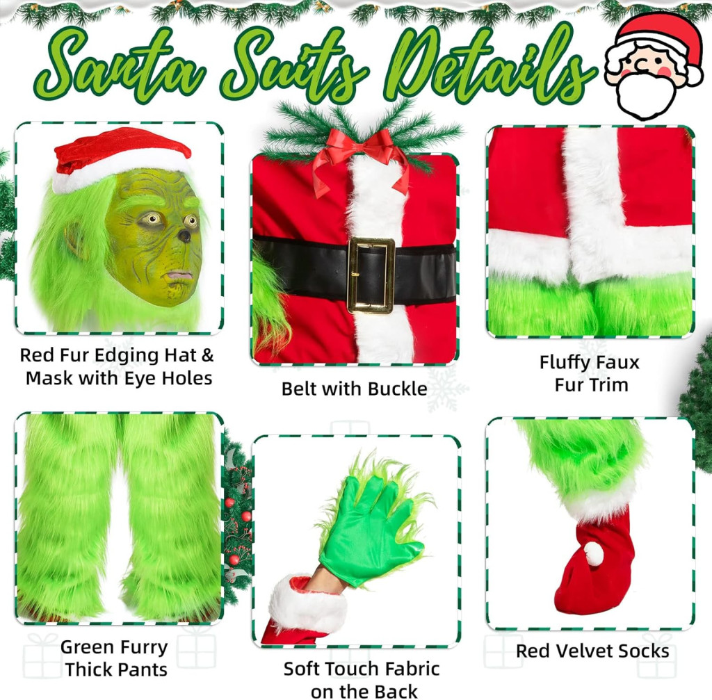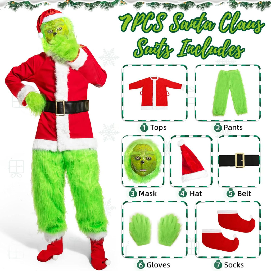 7 Részes Grincs Jelmez Felnőtteknek - Zöld Szörnykostüm Karácsonyra