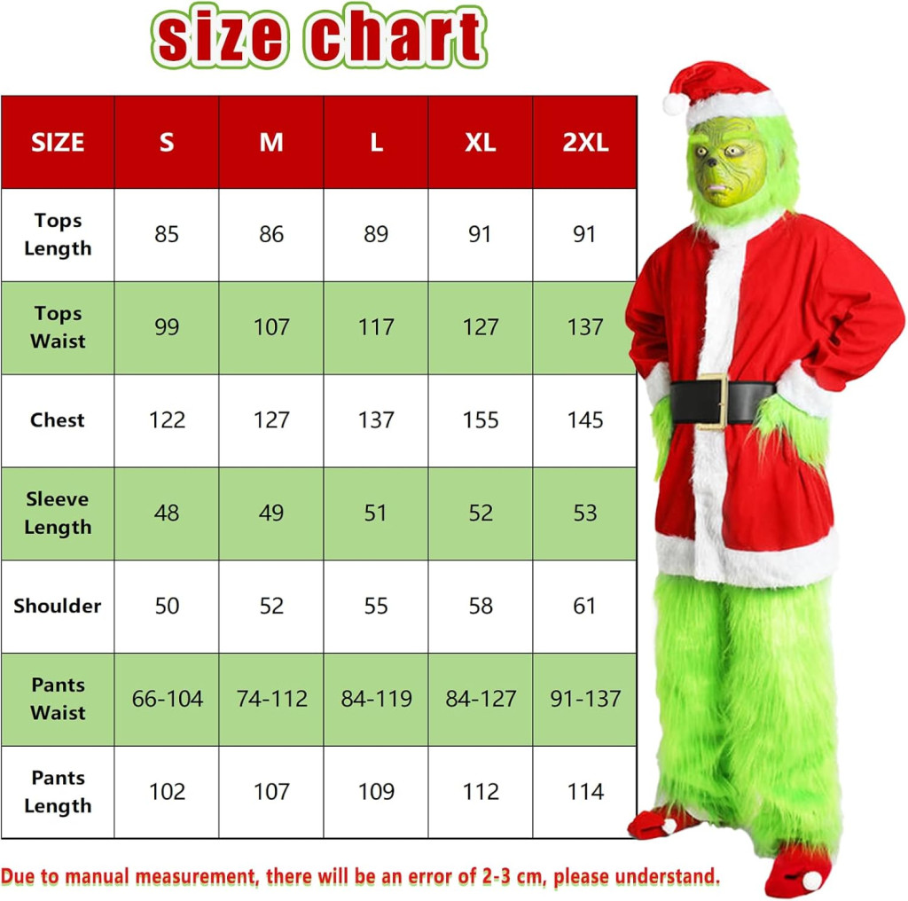 Claofoc 7 részes Mikulás jelmez szett zöld maszk Halloween karácsonyi farsang