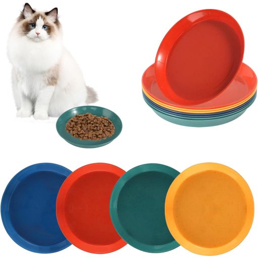 GOSHIES Set plitkih zdjelica za mačke, 8 komada, ergonomske zdjelice za hranjenje mačaka u 4 boje