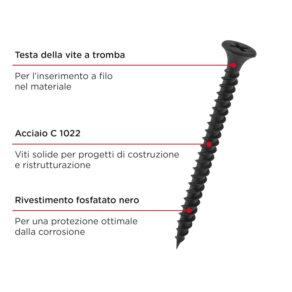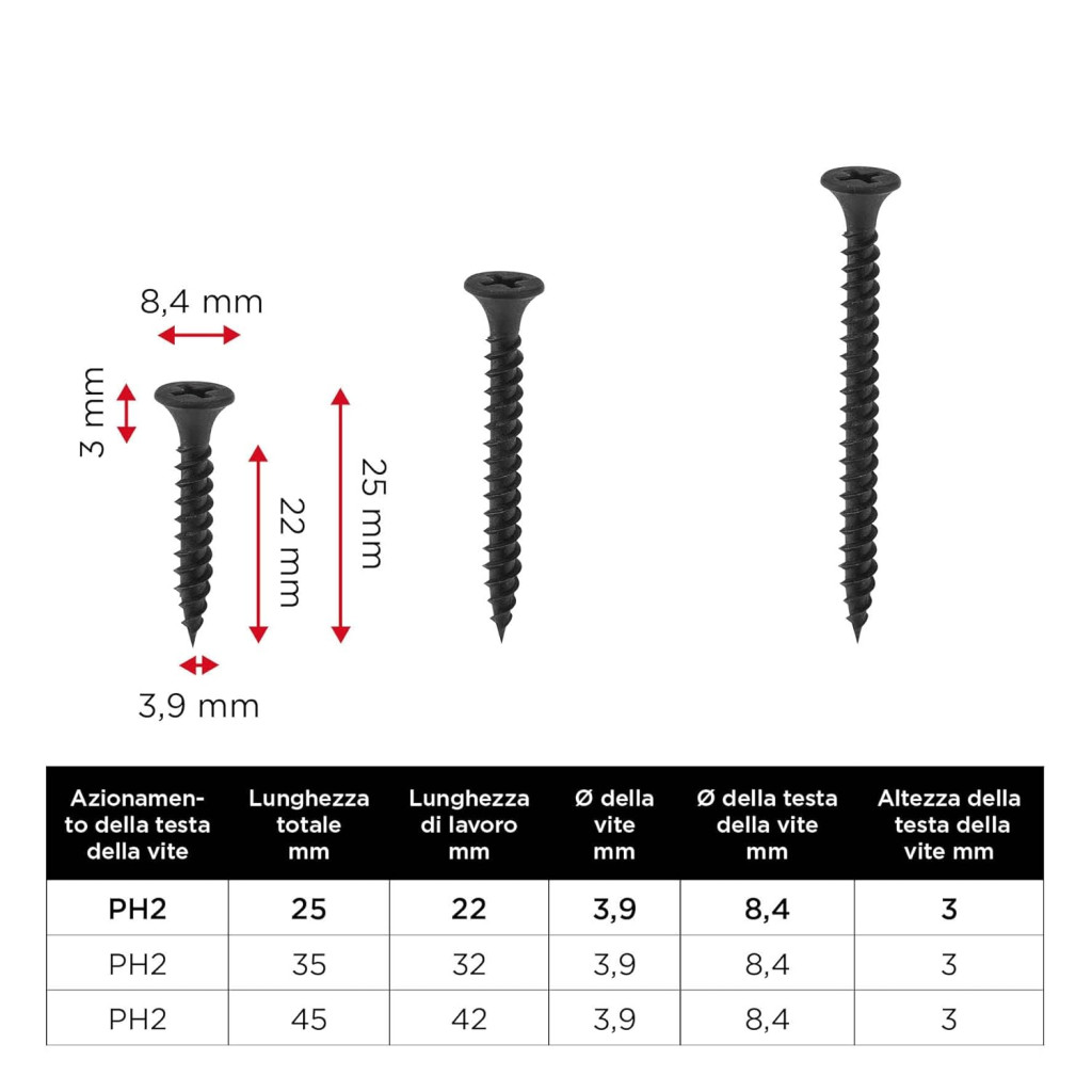kwb Gipszkartón Csavar 3.9x25mm PH2 350db Fekete Foszfátozott Finom Menet