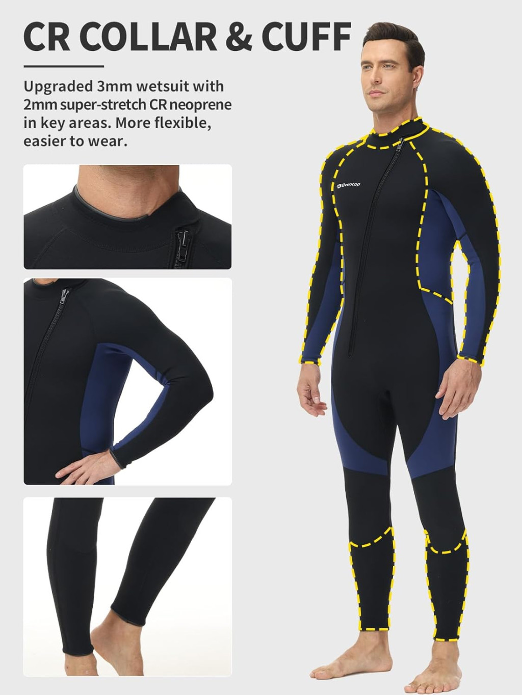 • 3/2 mm neoprén vastagság: A test fő részein 3 mm-es neoprén, a nyak, karok és lábszár körül 2 mm-es szupernyújtható CR neoprén biztosítja az ideális egyensúlyt a melegség és a mozgásszabadság között