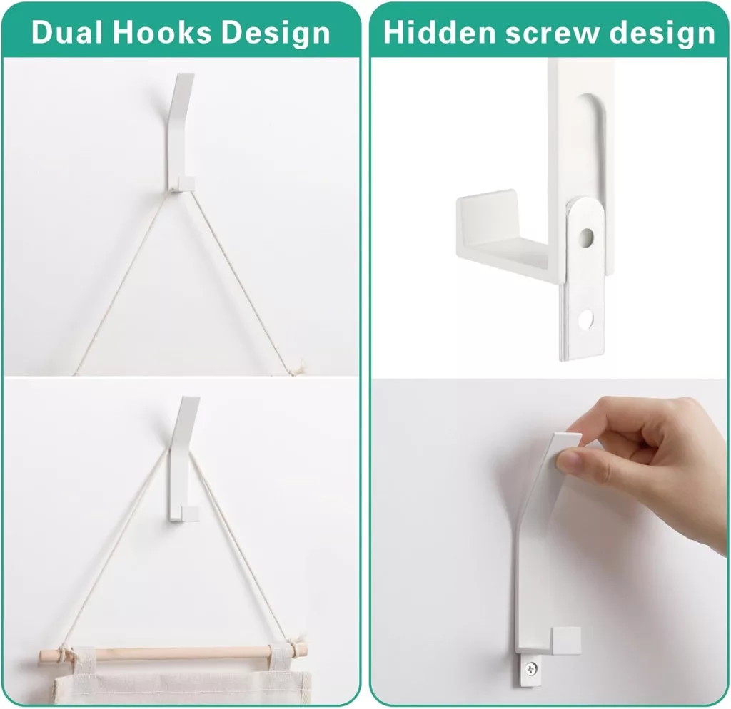 Kssvzz set od 6 bijelih skrivenih zidnih vješalica za kupaonicu i spavaću sobu