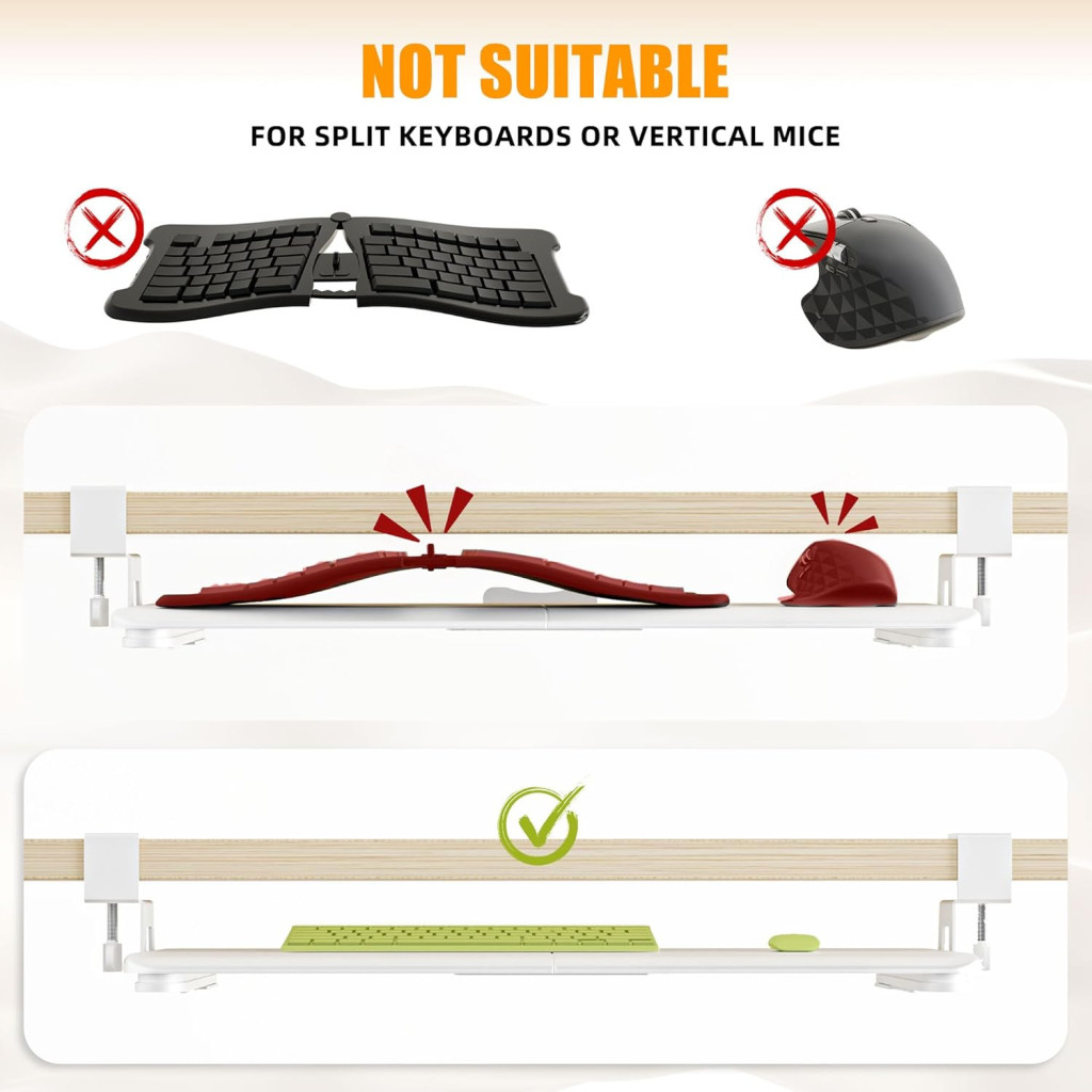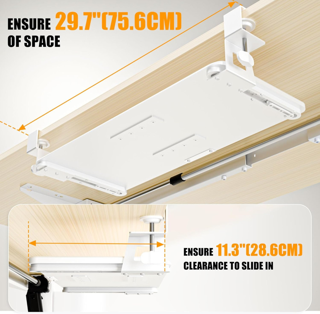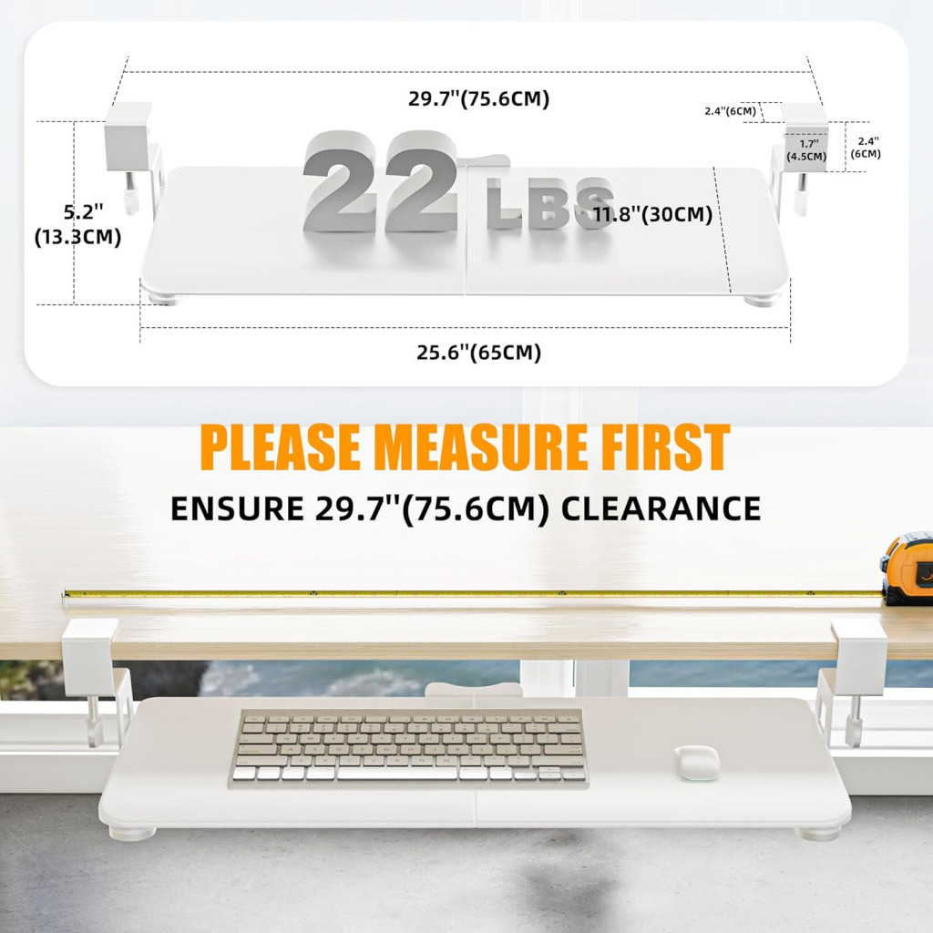 ERGOMAKER Billentyűzet Tálca 65x30cm Csíptetős Húzható Számítógép Fiók Fehér