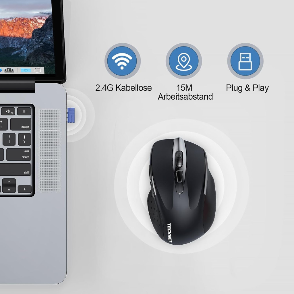 TECKNET Vezeték nélküli Egér Töltöthető 4800 DPI Csendes Optikai Számítógép Egér