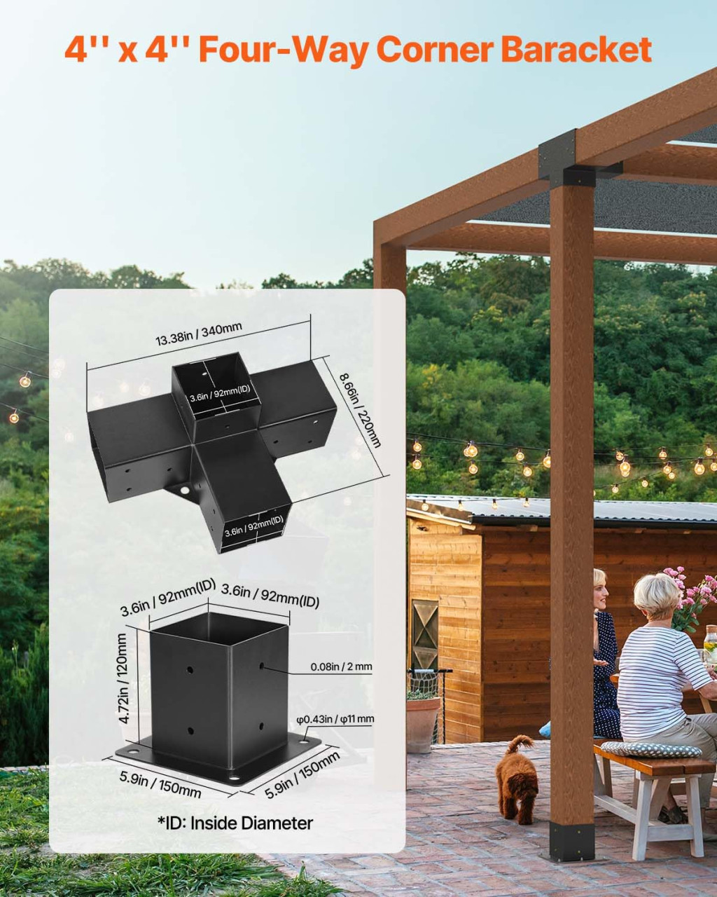 A VEVOR 92x92 mm-es pergola sarokcsatlakozó 4 darabos szett minden kertépítő álma: