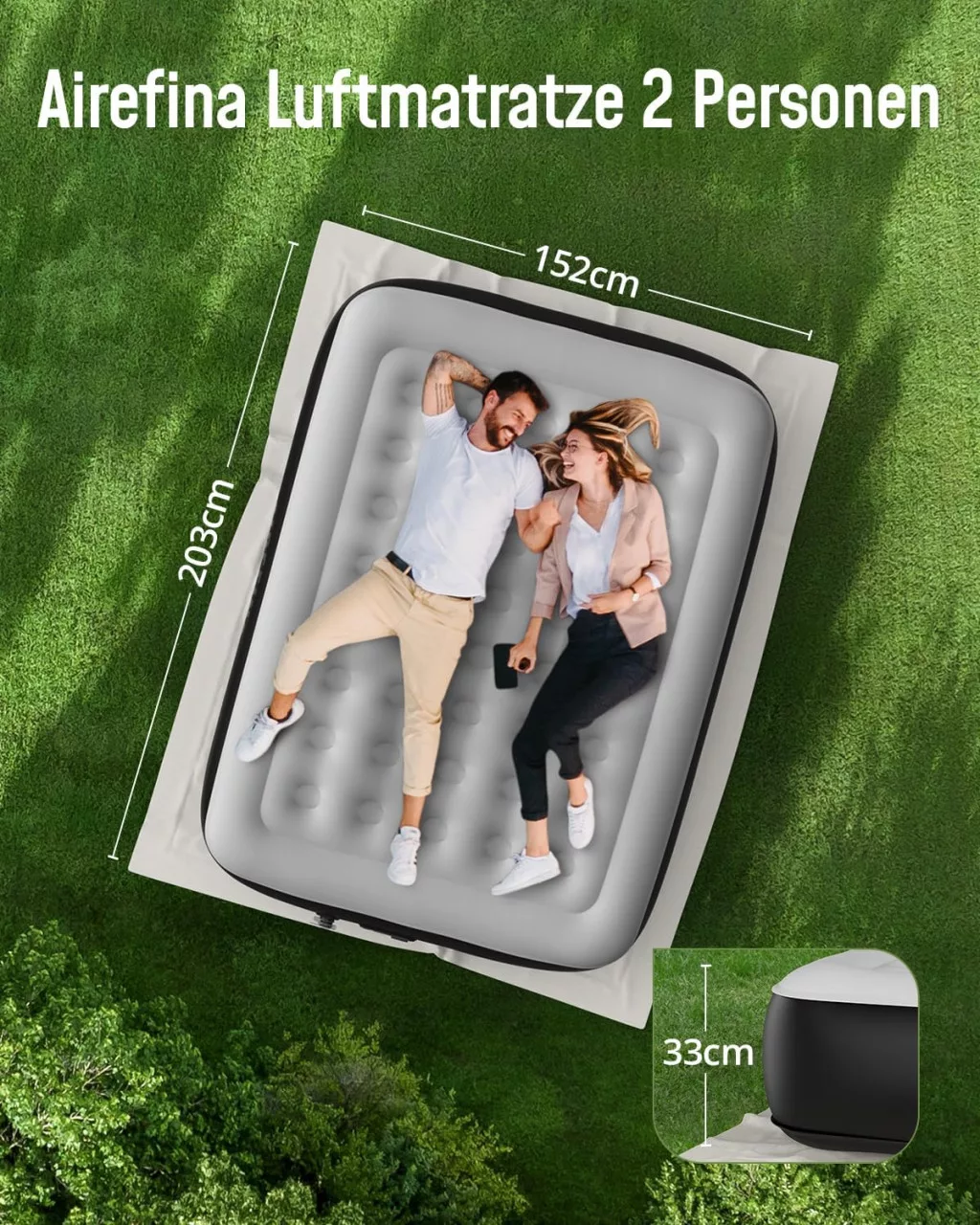 Airefina Madrac na Napuhavanje za 2 Osobe - S Ugrađenom Pumpom, Torbom za Pohranu