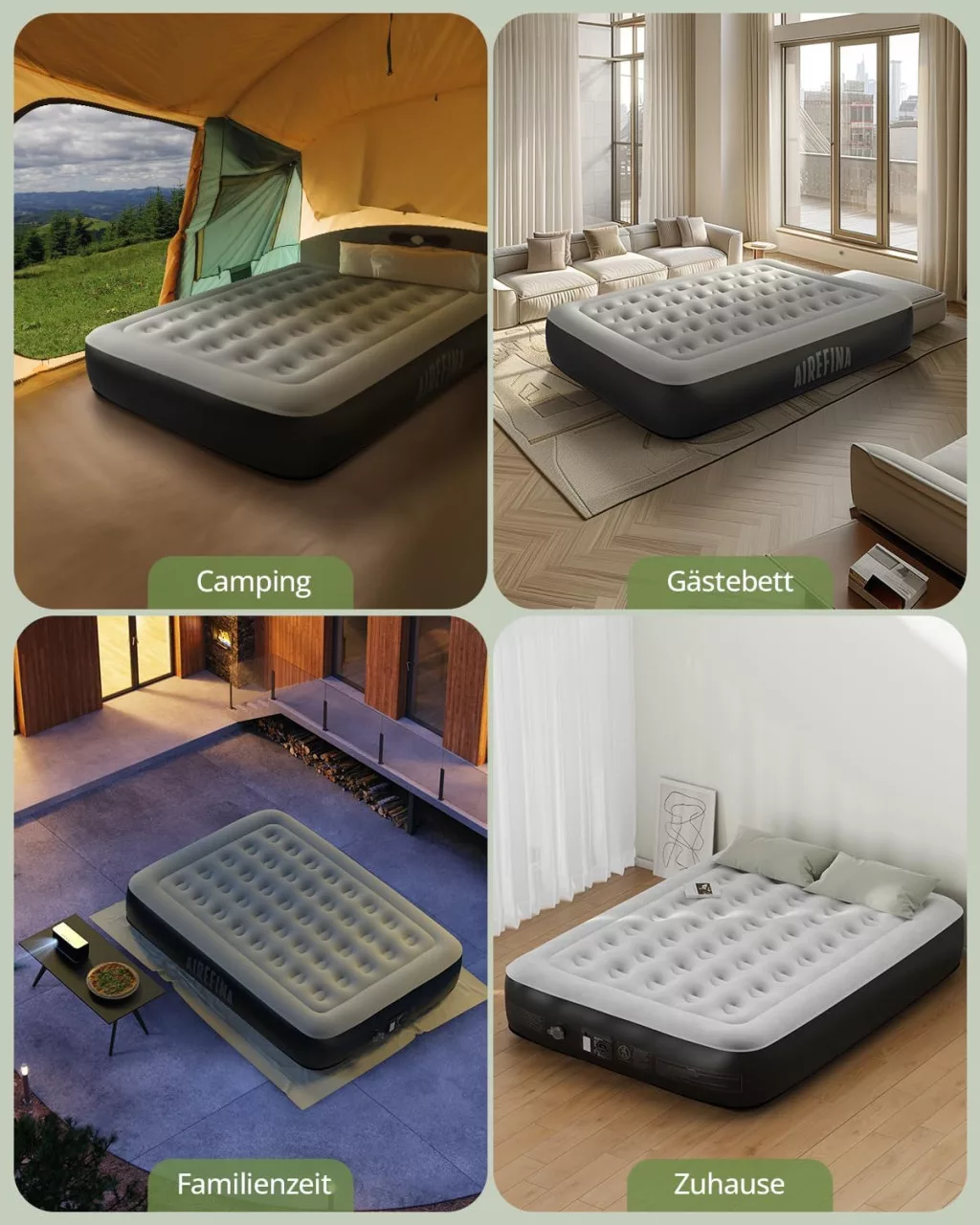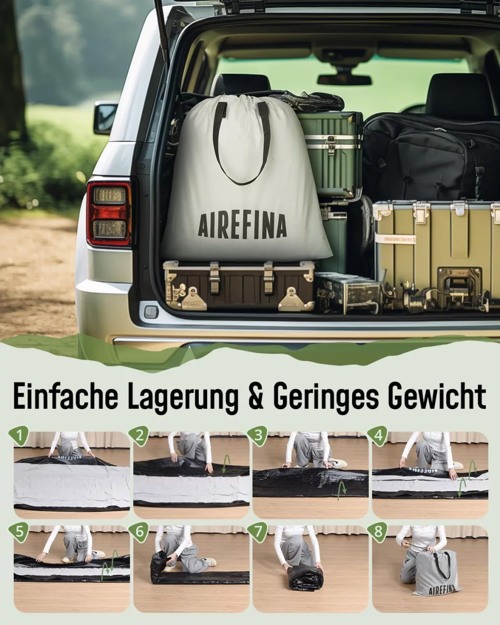 Airefina madrac na napuhavanje savršen je izbor za one koji cijene udobnost, praktičnost i kvalitetu. Bilo da se radi o neočekivanim gostima, kampiranju ili festivalima, ovaj madrac će vam uvijek biti pouzdan partner. Brzo napuhavanje, udobna površina za spavanje i jednostavno pohranjivanje prednosti su koje se dugoročno isplate. Uložite u rješenje koje će vam služiti godinama i učinite spavanje udobnim svugdje!