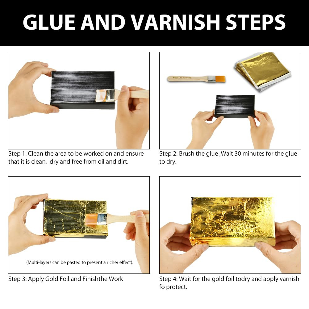 2. lépés - Ragasztó alkalmazása: Az ecset segítségével egyenletesen vigye fel a vízalapú ragasztót a felületre. Ne alkalmazzon túl sok ragasztót, mert az ráncos arany levélt eredményezhet.