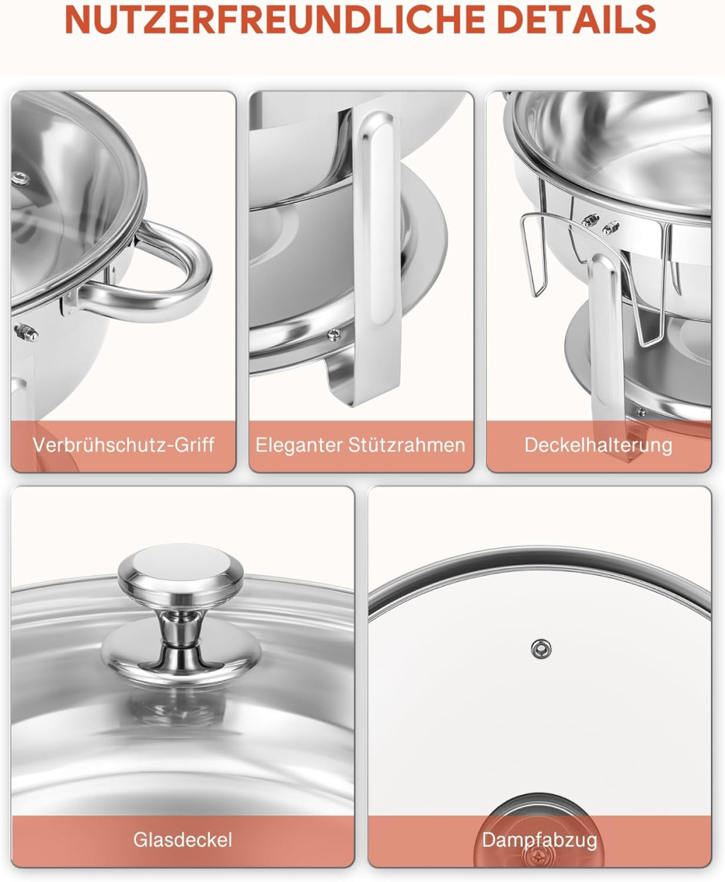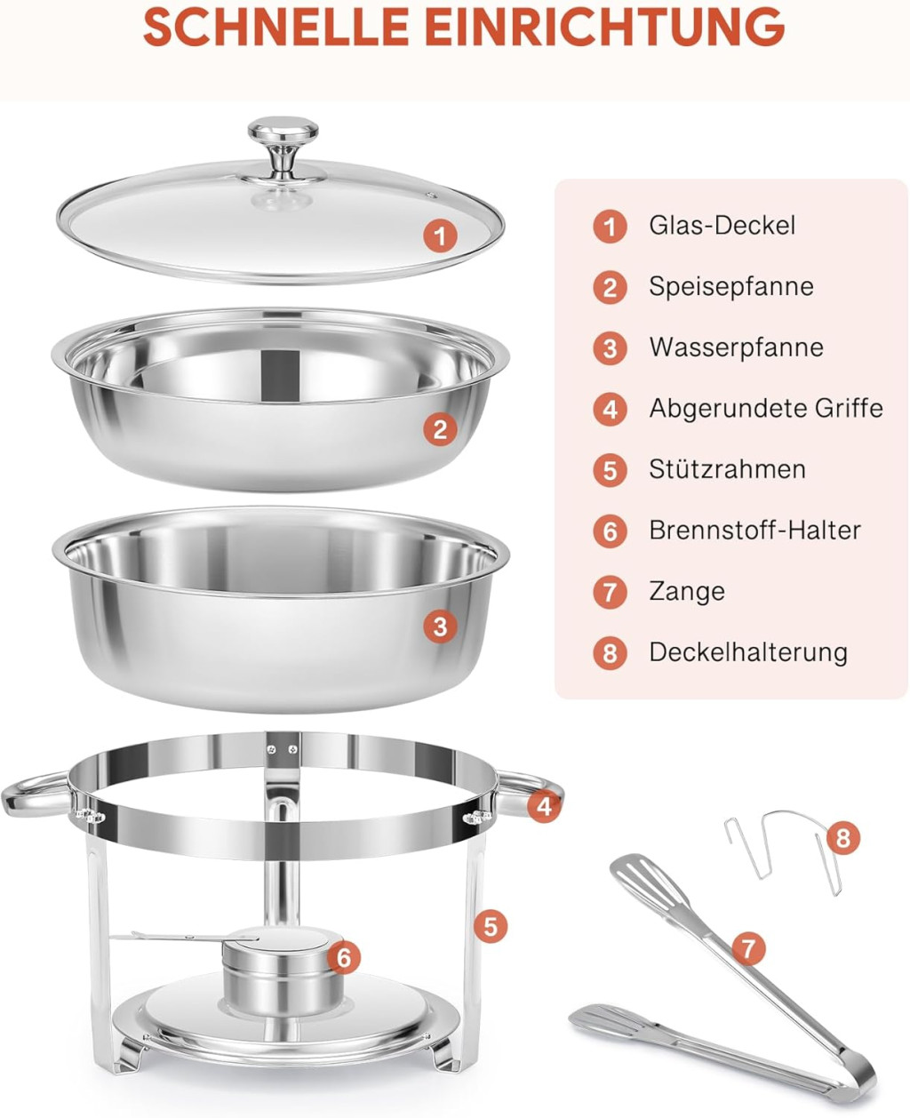 • Elegáns, kupolás üvegfedő a hő megtartásához és az étel megfigyeléséhez