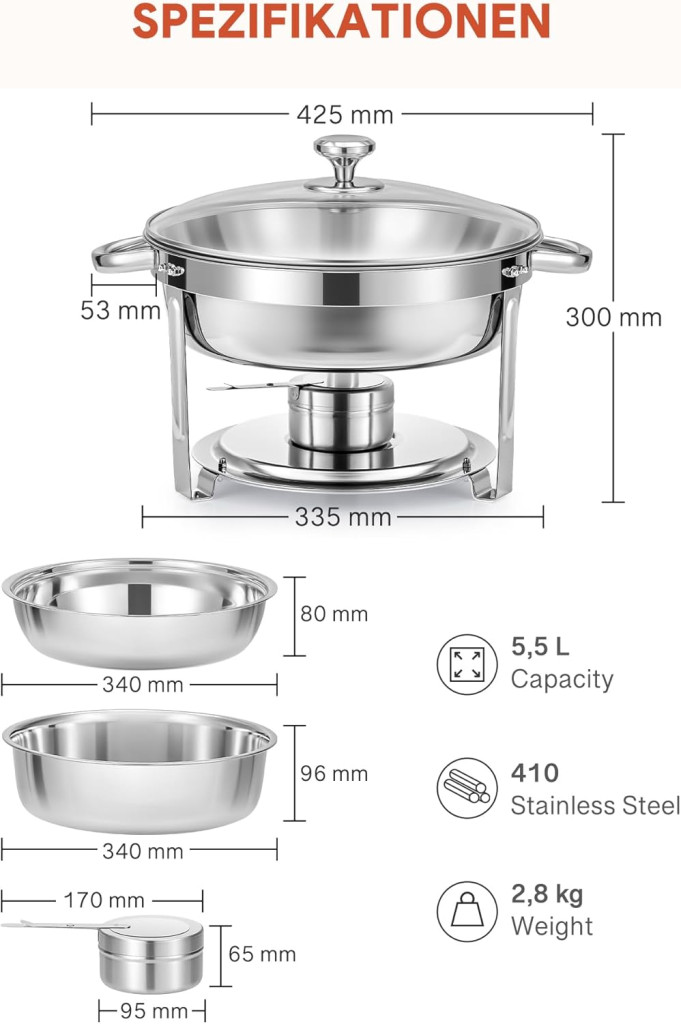 • 5,5 literes kapacitás edényenként, ideális mennyiség büféasztalokhoz