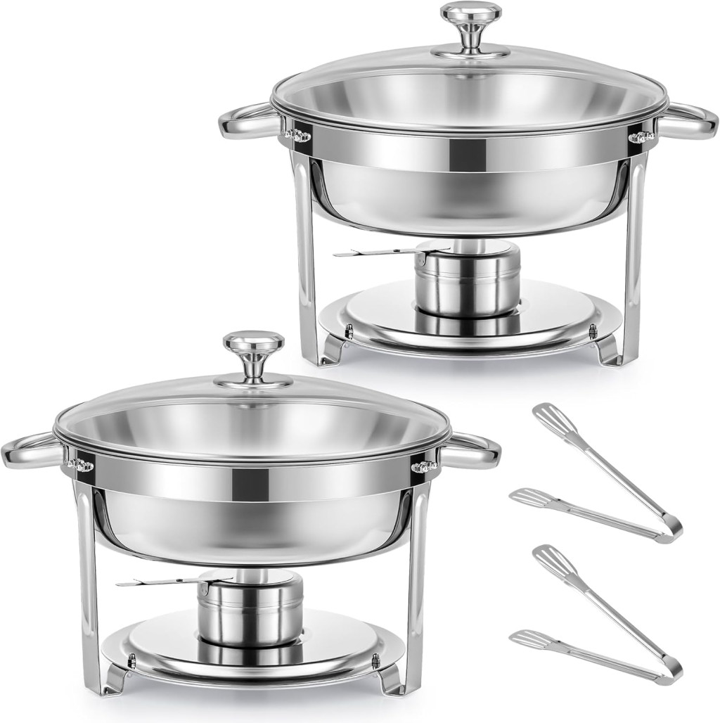 Wilprep 5,5 L Rozsdamentes Acél Ételmelegítő Szett 2 db - Kerek Chafing Dish Üvegfedővel, Ételtároló Edény Éttermeknek, Büféknek, Rendezvény