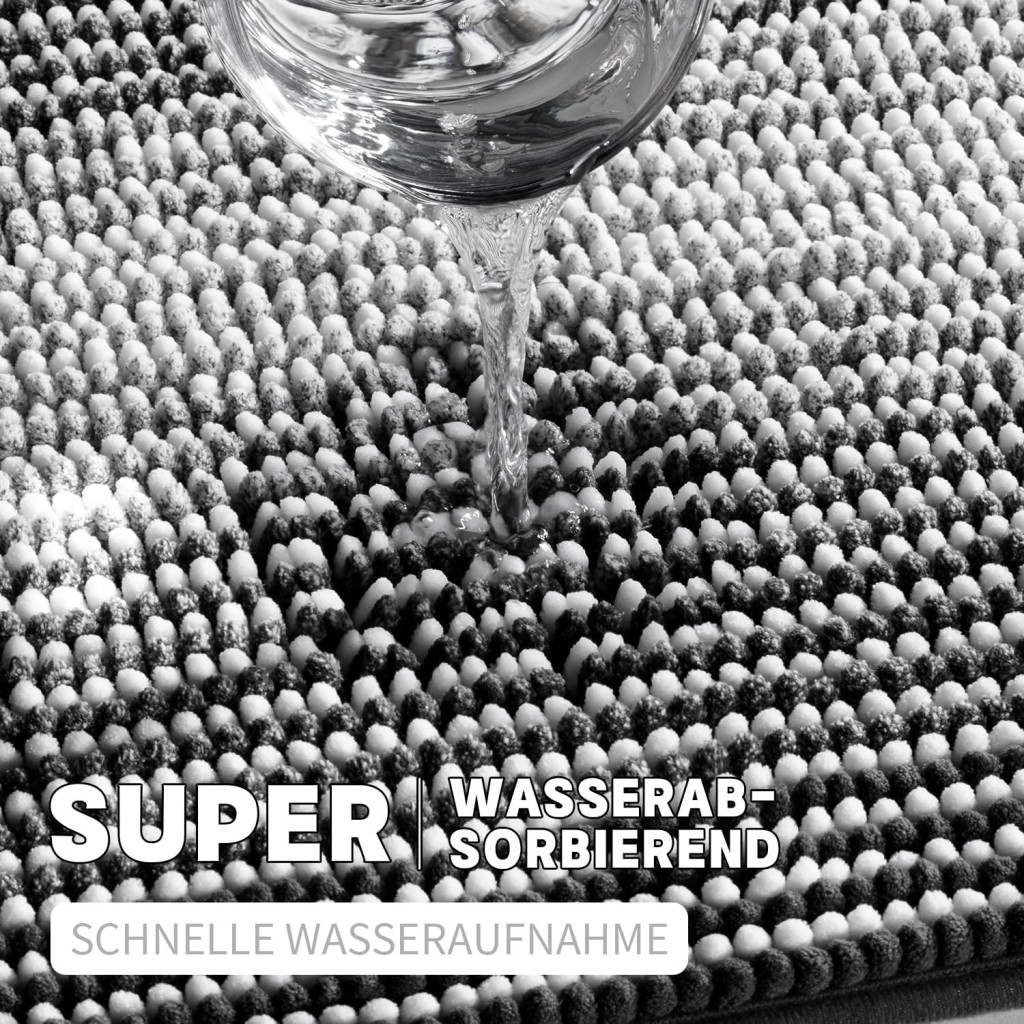 Chakme Chenille set tepiha za kupaonicu, 5 dijelova, debeli protuklizni otirač za kupaonicu, crni