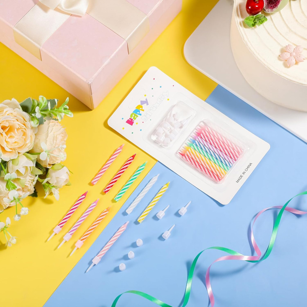 Sinmoe Svjećice za rođendansku tortu u duginim bojama - 20 komada tankih, šarenih svjećica s držačima, ukras za torte za vjenčanja, mature, proslave rođenja djeteta