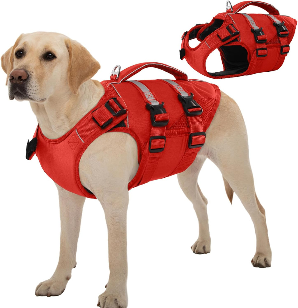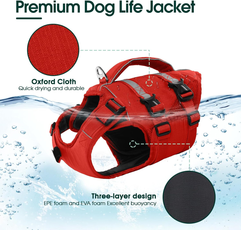 Kuoser Prsluk za plivanje pasa XL Crveni, s reflektirajućom ručkom i poboljšanom plovnosti
