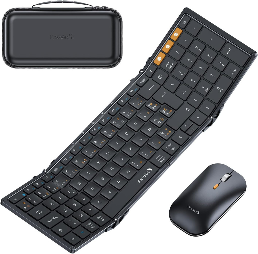 ProtoArc XKM01 Összecsukható Vezeték Nélküli Billentyűzet Egér Combo AZERTY Bluetooth USB