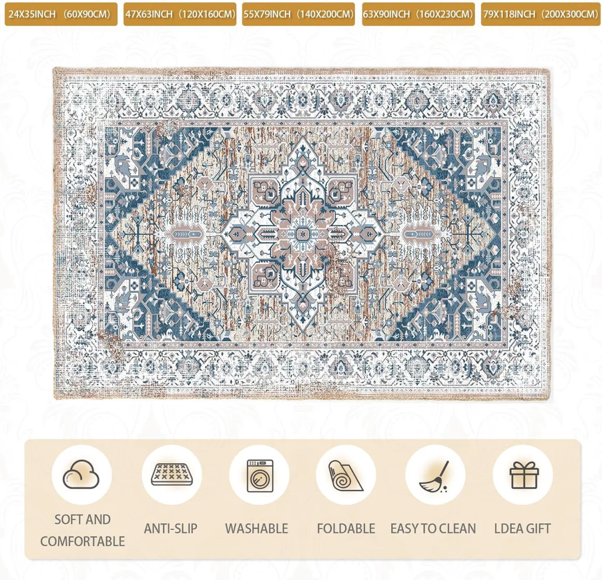 Az Lrrtso mosható szőnyeg modern bohém stílusban, amely tökéletes választás minden helyiséghez: