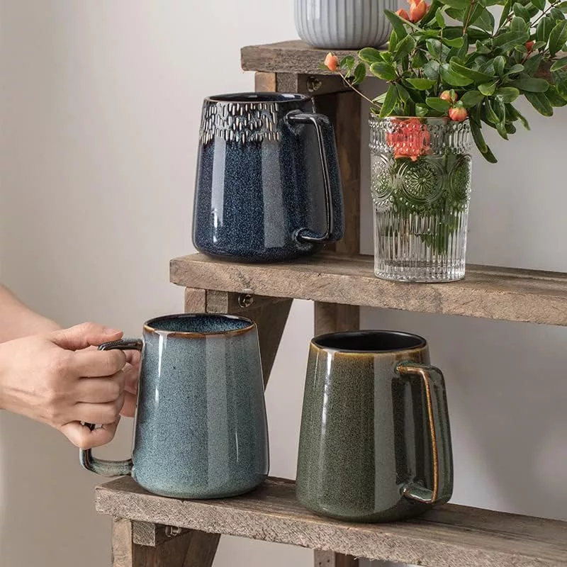 WOQIJENCV 700ml Kerámia Kávésbögre Zöld - Nagy Kapacitású Cappuccino és Teásbögre