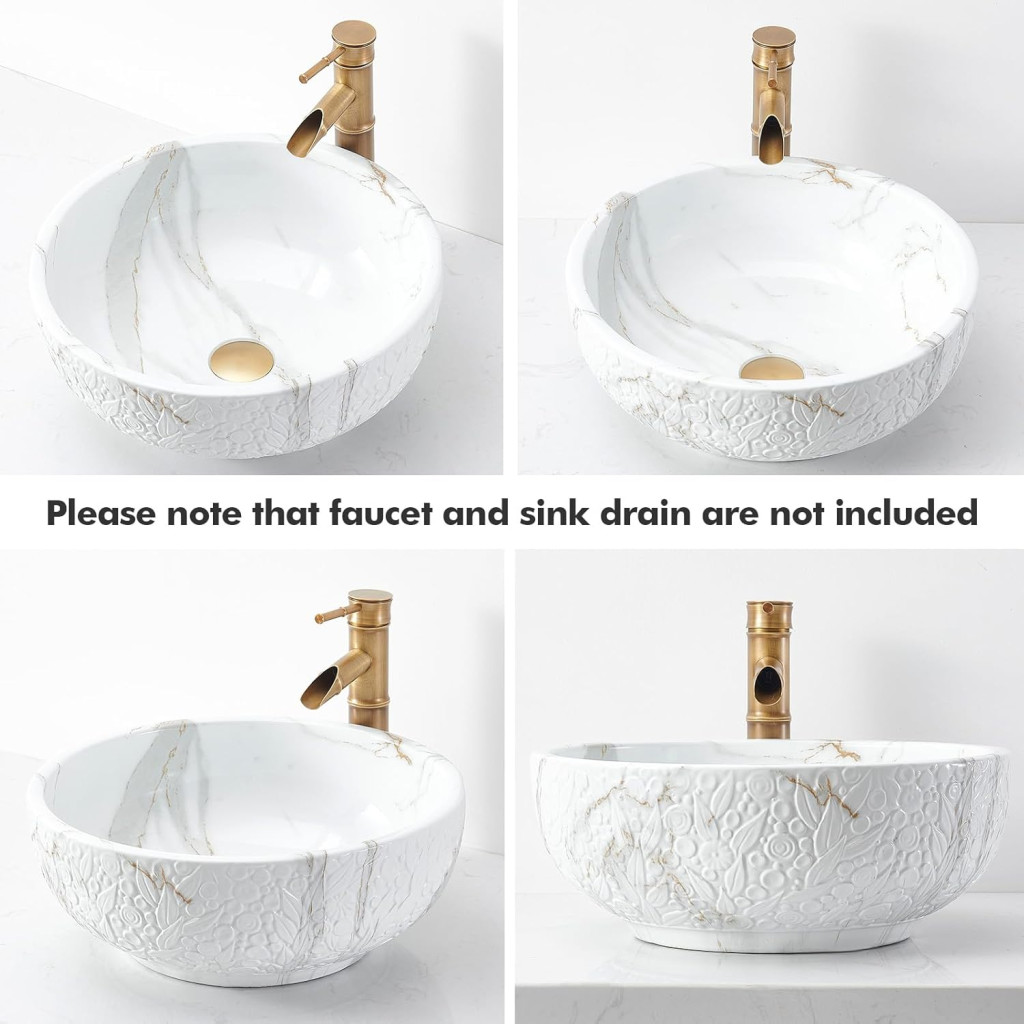 NATURFLAIR Okrugli Keramički Umivaonik 420mm Jazz Bijeli Mramorni Uzorak Za Na Pult