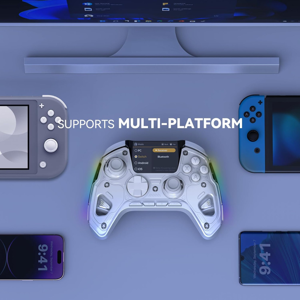 Kontroler odlično radi na PC-u, Nintendo Switchu, iOS i Android uređajima. Bluetooth prijemnik i USB kabel osiguravaju fleksibilne mogućnosti povezivanja. Bilo da ste povremeni igrač ili profesionalni esports igrač, ManbaOne se prilagođava vašim potrebama.