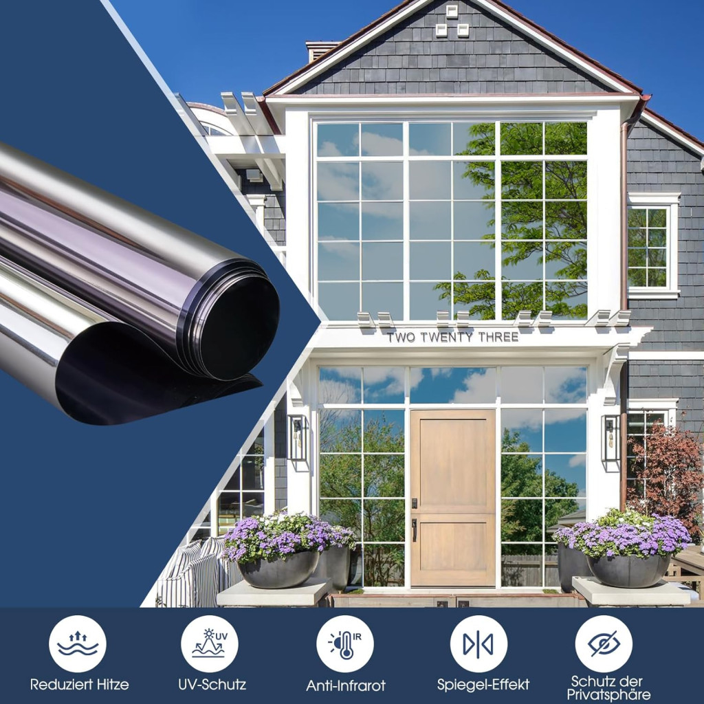 • Hővisszaverő technológia: A fólia az infravörös sugarakat visszaveri, így nyáron csökkenti a légkondicionálás költségeit, télen pedig megtartja a belső hőt