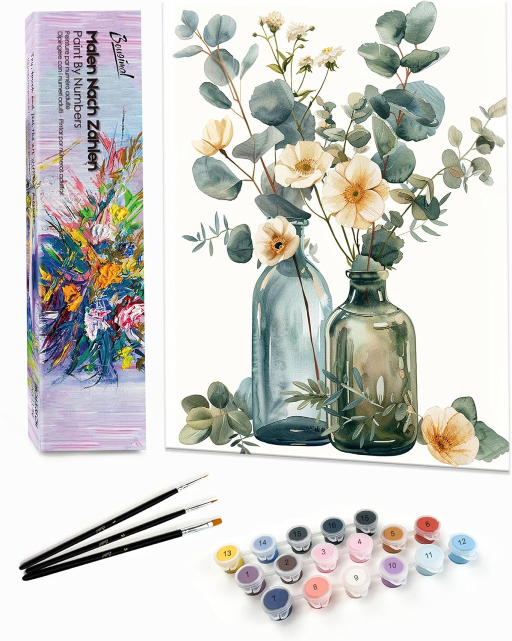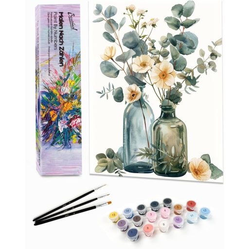 A Bougimal Számok szerinti festés egy teljes, kezdőbarát festőkészlet, amely 2014 óta segít a kreatív embereknek kifejezni magukat. Ez a 28 x 35 cm-es virágos tájkép motívum ideális választás azoknak, akik szeretnének relaxálni, stresszt oldani, és egy szép műalkotást létrehozni. A készlet tartalmaz mindent, ami szükséges: előnyomott vászon, professzionális ecseteket és magas minőségű akrillfestékeket.