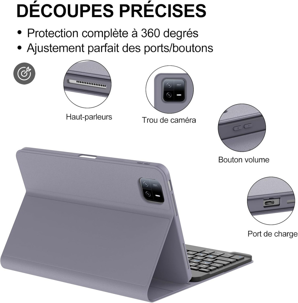 JADEMALL Keyboard Case Xiaomi Pad 6/6 Pro 11 inča - Ljubičasta AZERTY Bluetooth Tipkovnica