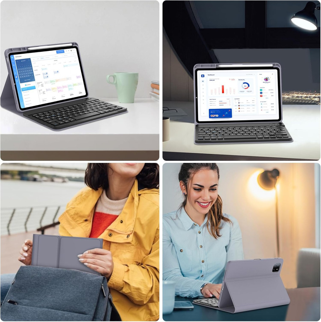 Ova tipkovnica s maskom idealan je izbor za one koji traže mobilnu produktivnost. Savršena je za uredski rad, gdje tablet funkcionira kao laptop. Odlično rješenje za studente za bilježenje i uređivanje dokumenata. Putnici i digitalni nomadi cijenit će lakoću prijenosa i profesionalan izgled. Preporučuje se i za kućnu upotrebu, gdje tablet služi za konzumaciju medija ili zabavu. Podesivi kutovi gledanja osiguravaju udobnost tijekom dugih radnih sesija.