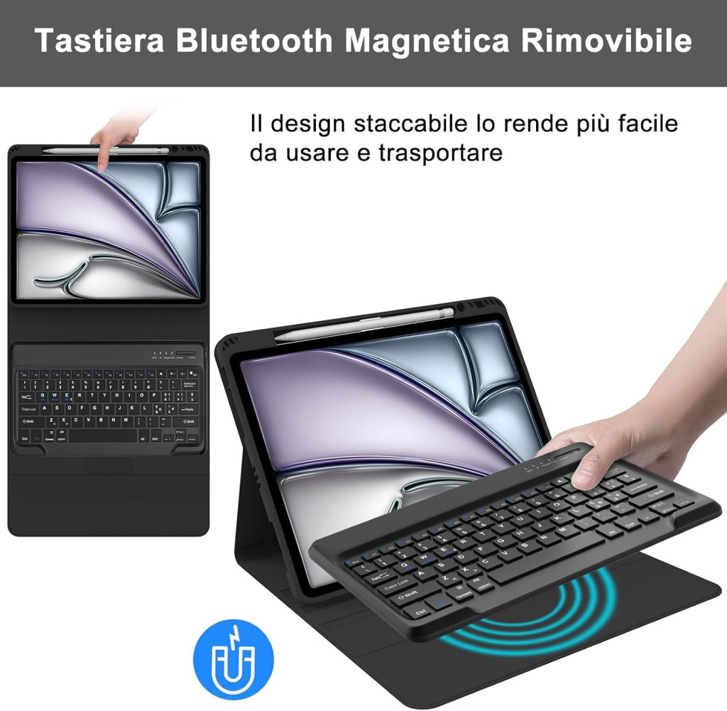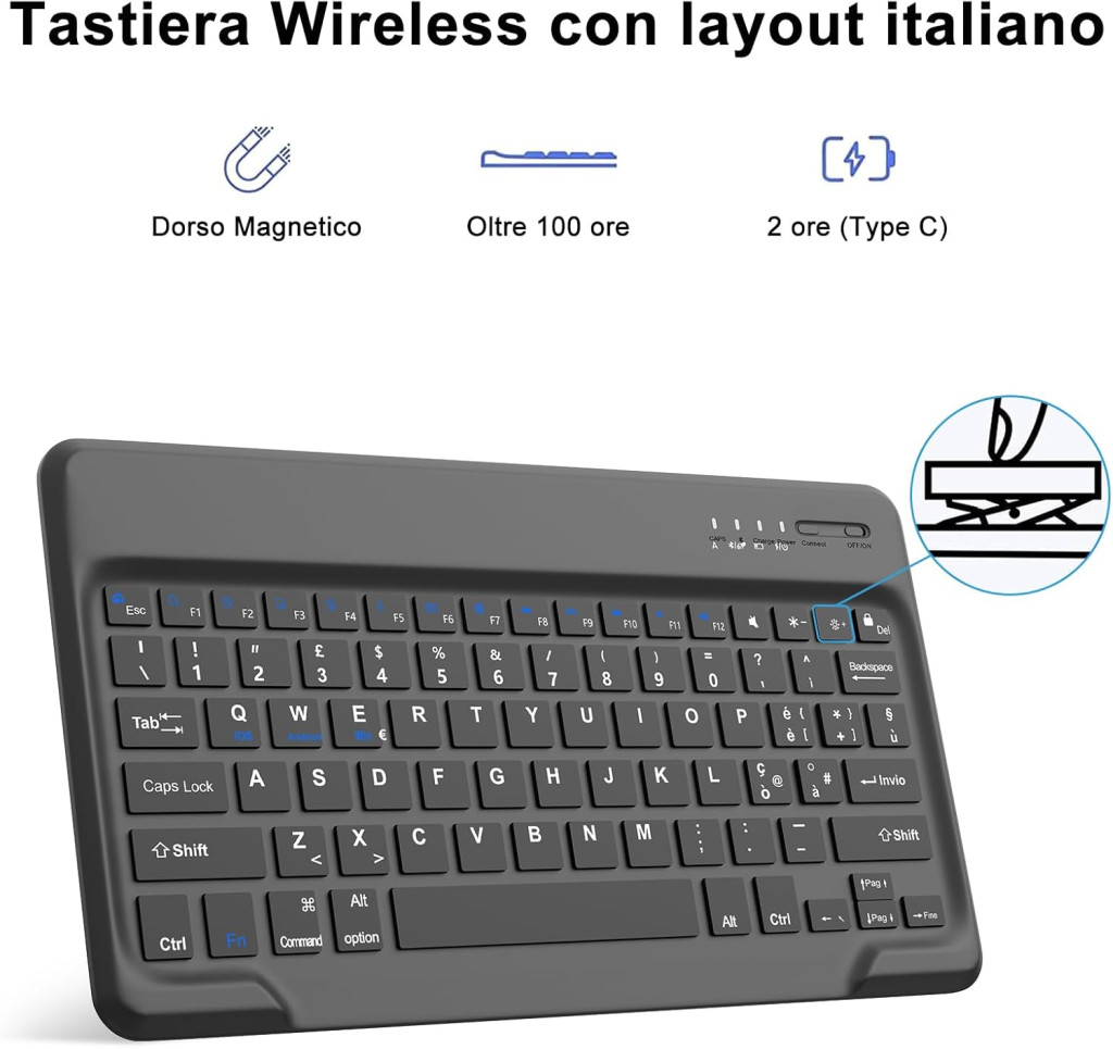 - Levehető billentyűzet: Mágneses rögzítésű, olasz kiosztású Bluetooth billentyűzet