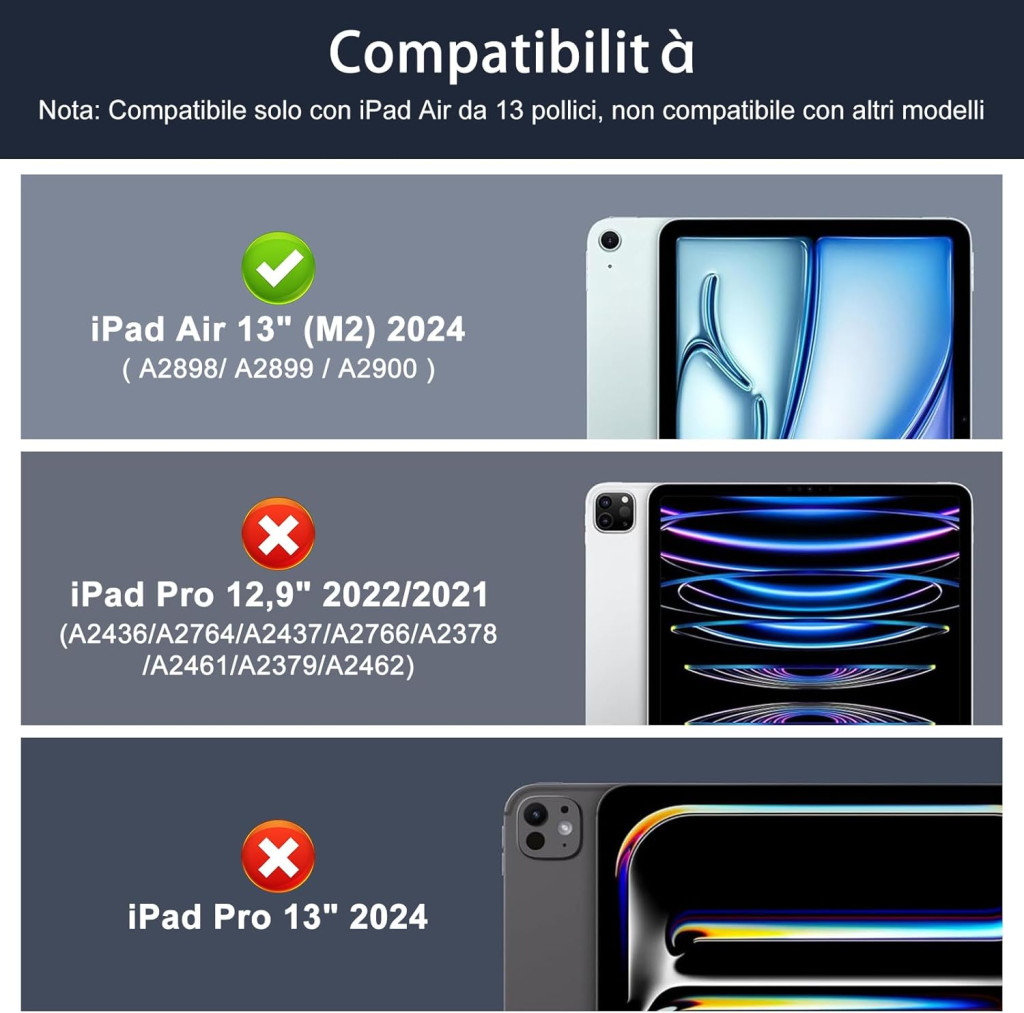 A SENGBIRCH billentyűzetes tok kifejezetten az iPad Air 13 inch (M2, 2024) és iPad Air 13 inch (M3, 2025) modellekhez lett tervezve, tökéletes illeszkedést és hozzáférést biztosítva minden porthoz, gombhoz és funkcióhoz. Fontos megjegyezni, hogy más iPad modellekkel nem kompatibilis, ezért vásárlás előtt mindenképpen ellenőrizze készüléke pontos típusát.