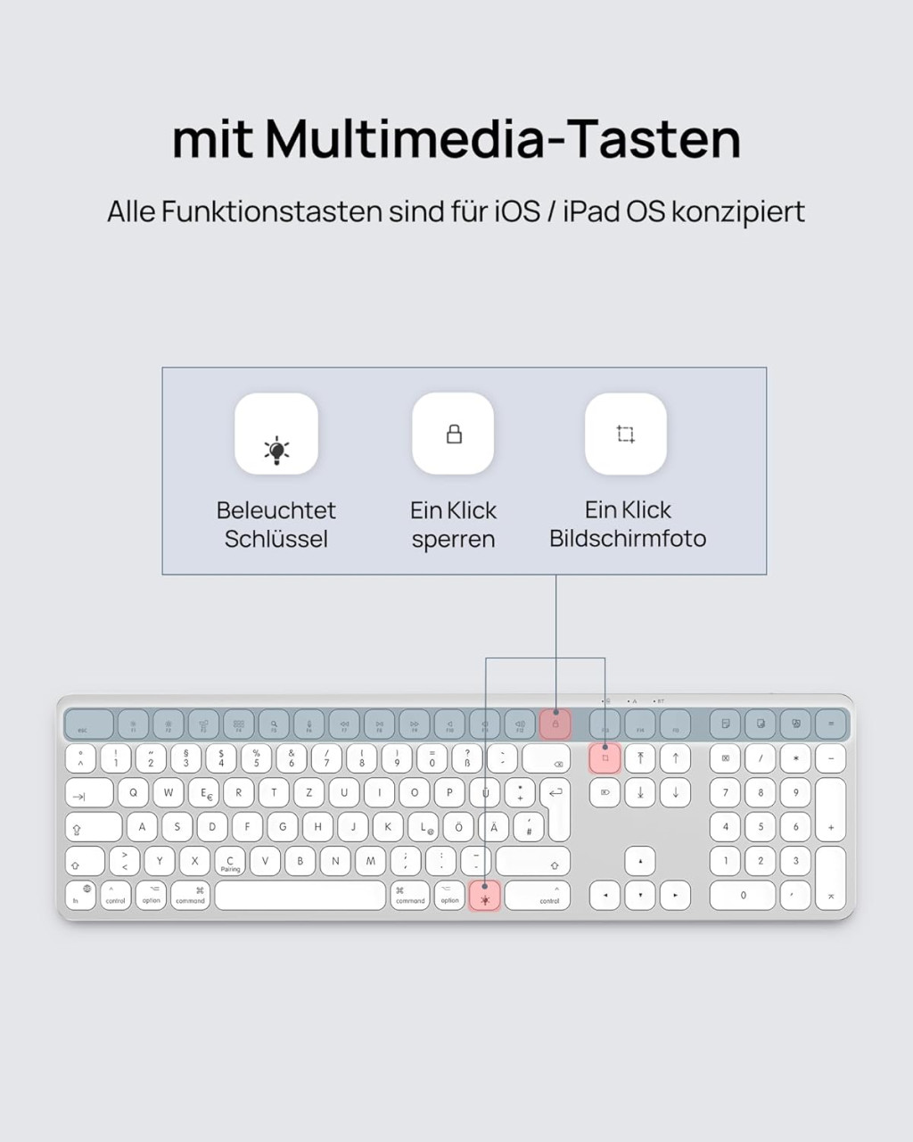 A SODI Wireless Bluetooth Keyboard egy prémium minőségű, vezeték nélküli billentyűzet, amely kifejezetten Mac, iPad és iPhone eszközökhöz lett tervezve. Az elegáns alumínium ház, a 110 gombos teljes méretű kiosztás és a korszerű Bluetooth 5.0 technológia kombinációja egy olyan billentyűzetet eredményez, amely tökéletesen illeszkedik az Apple ökoszisztémájába. A QWERTZ német billentyűzet-elrendezés biztosítja a német nyelvű felhasználók számára az optimális gépelési élményt.