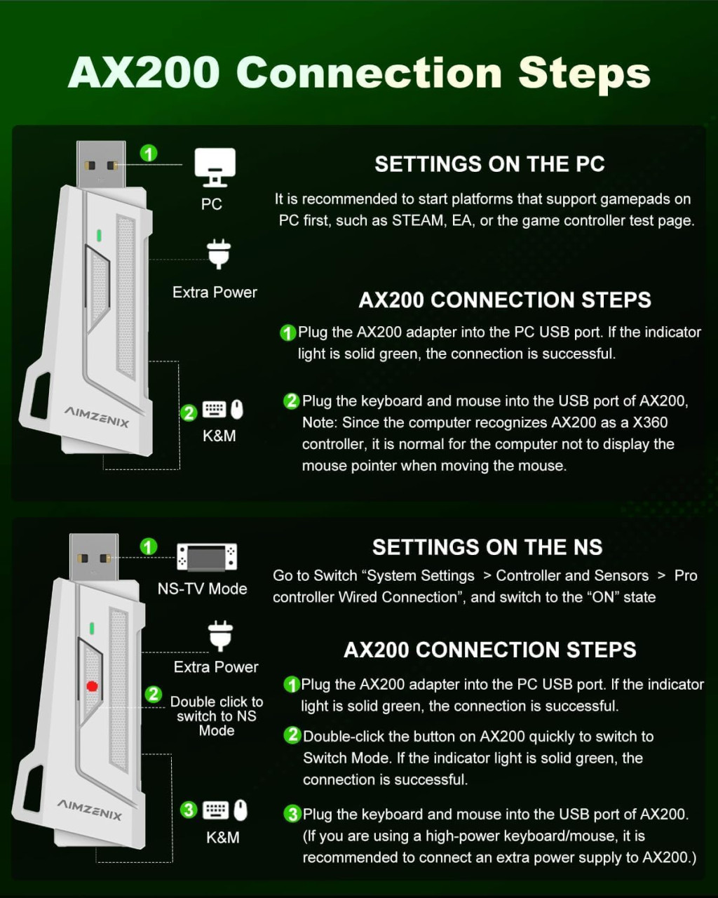 Az AX200 adapter a tökéletes megoldás azoknak a játékosoknak, akik szeretnék kombinálni a billentyűzet és egér precizitását az X360 kontrollerhez szükséges aimbot és célzási segítség előnyeivel. Az adapter professzionális szintű teljesítményt nyújt versenyképes áron, és a GEEKVICE alkalmazáson keresztül teljes testreszabhatóságot biztosít. Legyen szó casual vagy esports szintű játékról, az AX200 a megfelelő választás.