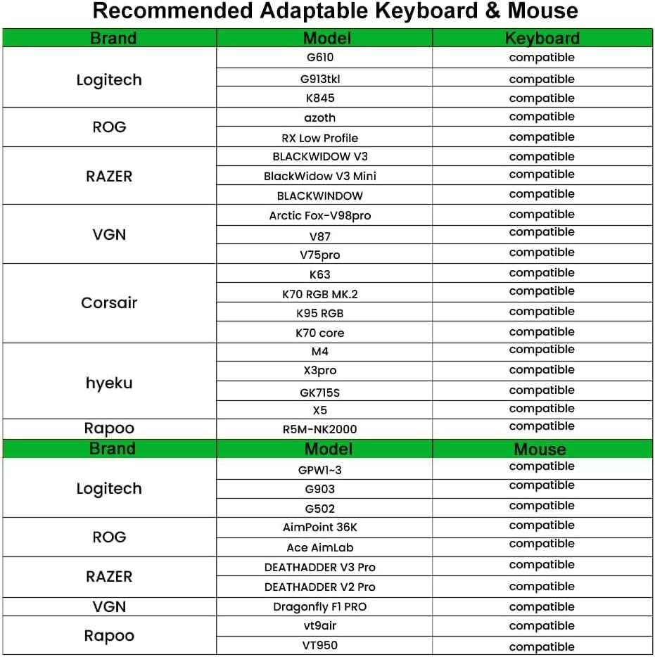 - Nintendo Switch Támogatás: Az OTG adapter segítségével NS/NS2 konzolokkal is kompatibilis.