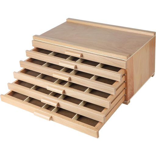 CPROSP 6 fiókos fa művészdoboz festékekhez, ceruzákhoz és ecsetekhez