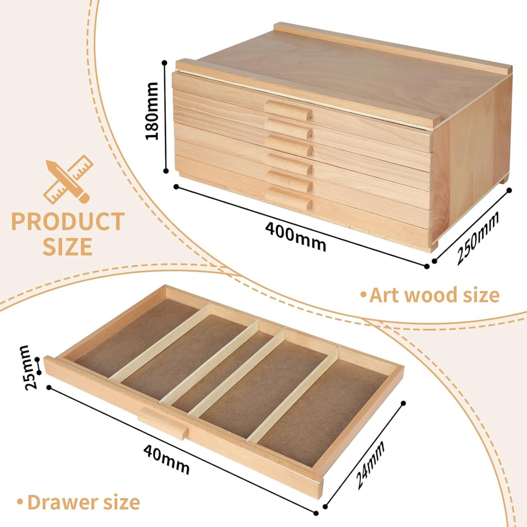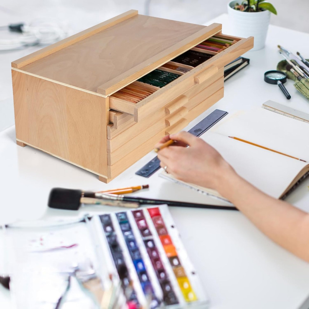CPROSP 6 Fiókos Fa Művészeti Kellékek Tárolódoboz - Ceruzák, Tollak, Ecsetekhez