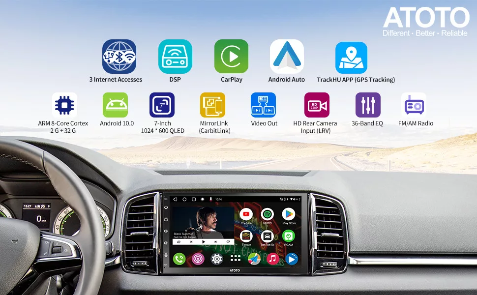 Az 1280x720 pixeles QLED kijelző kristálytiszta képet és élénk színeket biztosít, amely garantálja a kiváló láthatóságot napfényes körülmények között is. A vezeték nélküli CarPlay és Android Auto integráció lehetővé teszi, hogy egyszer csatlakozzon Bluetooth és Wi-Fi segítségével, majd az eszköz automatikusan újracsatlakozik minden indításkor.