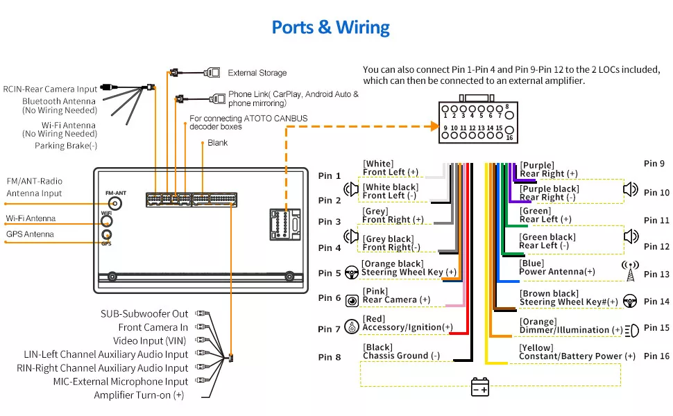 USB, AUX, RCA, CAN-BUS, TPMS |